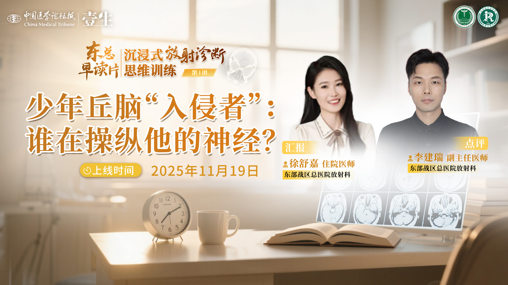 本期讲题:少年丘脑“入侵者”:谁在操纵他的神经?上线时间:2025年11月19日(周三)汇报专家:徐舒嘉 住院医师 东部战区总医院放射科点评专家:李建瑞 副主任医师 东部战区总医院放射科系列课程安排:
