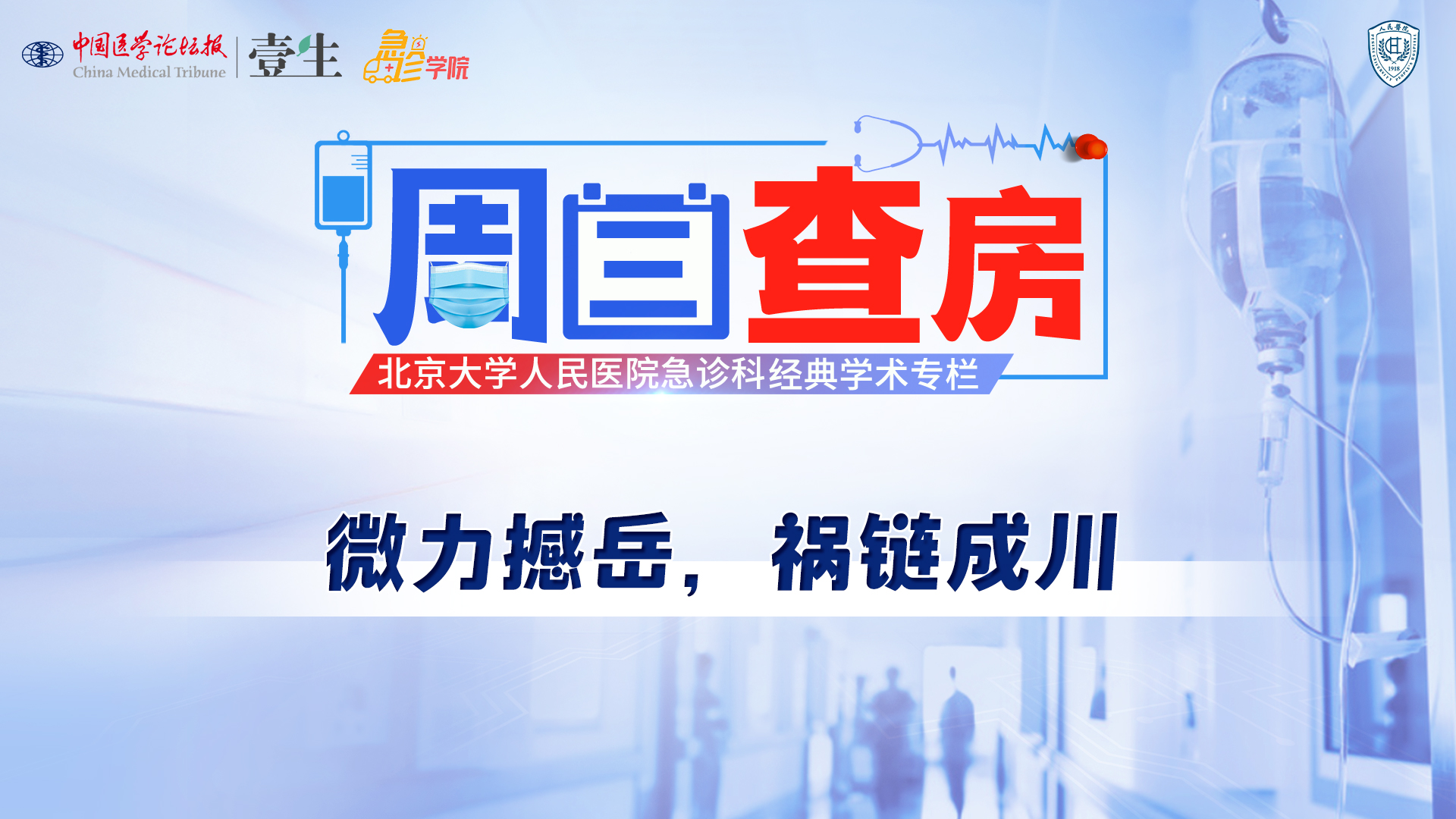 栏目介绍北京大学人民医院急诊科经典学术活动《周三查房》,自2020年11月起入驻中国医学论坛报·壹生急诊学院,经典病例结合急诊科核心知识点讲解,全部免费开放,供临床同道交流学习。更多内容,请安装壹生App,关注“急诊”频道。课程信息讲题:微力撼岳,祸链成川讲者:吴楠 医生讨论专家:王煜冉,董桂英等上线时间:3月6日(周五)温馨提示:微信搜索“壹生急诊学院”,关注后免费获得上课提醒,精彩内容不错过。