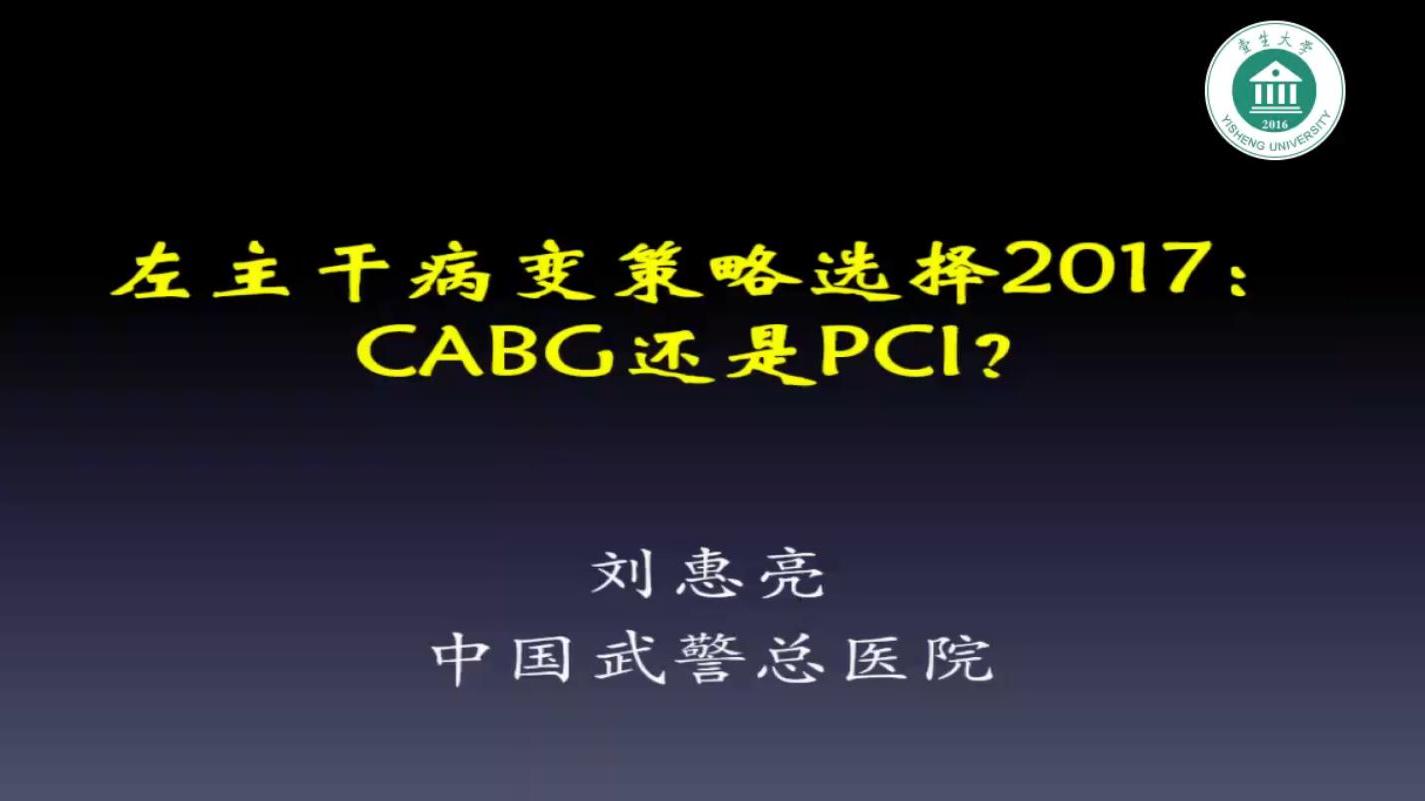 题目:左主干病变策略选择,CABG还是PCI?讲者:刘惠亮(中国武警总医院)来源:北京医学会心血管病学分会学术年会第二届北京国际心血管病学大会(BICC)暨京津冀一体化年会(JJJI)