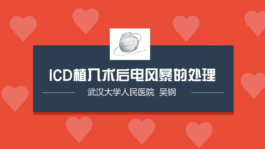 题目:ICD植入术后电风暴的处理讲者:吴钢(武汉大学人民医院)