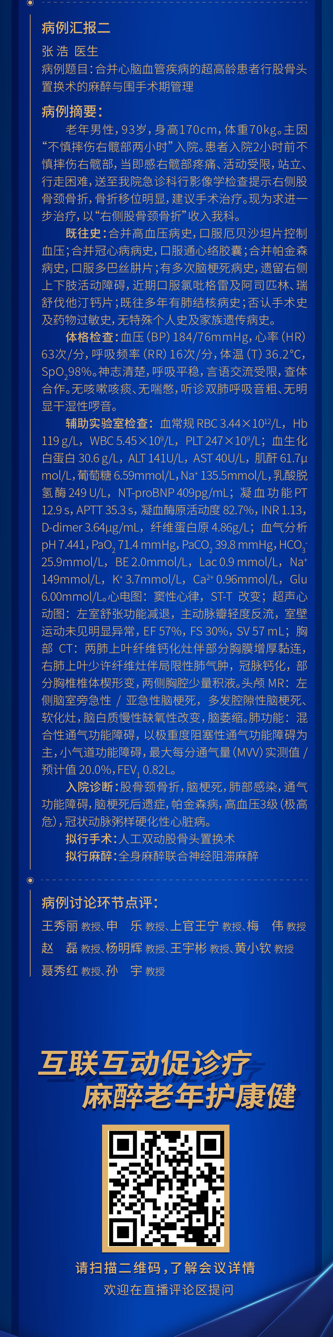 壹生直播老年麻醉与围手术期管理病例云查房(第94期)