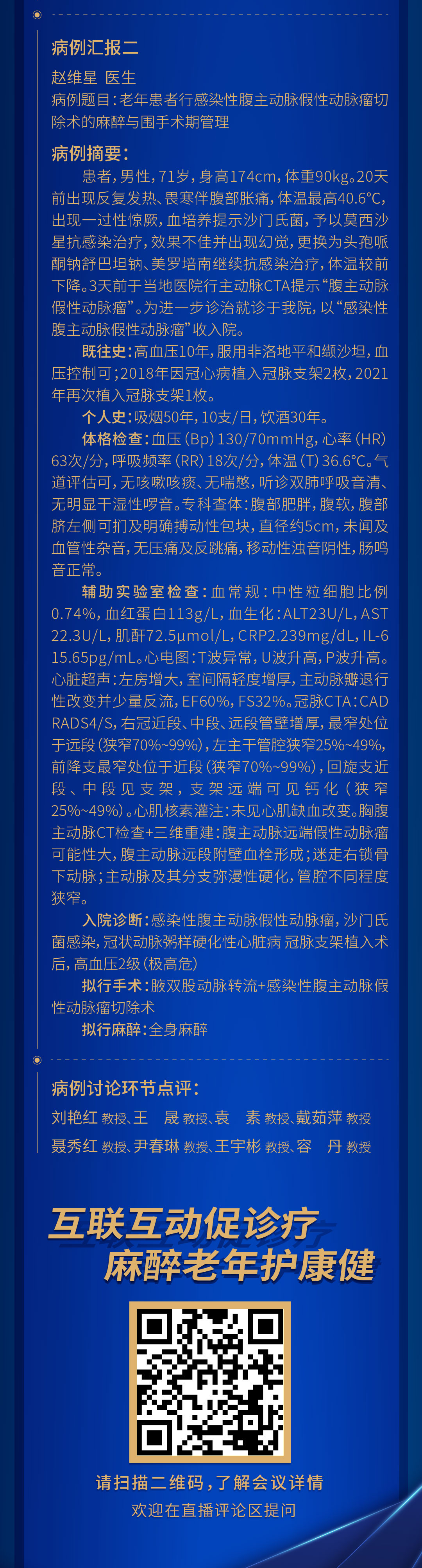 壹生直播老年麻醉与围手术期管理病例云查房(第88期)