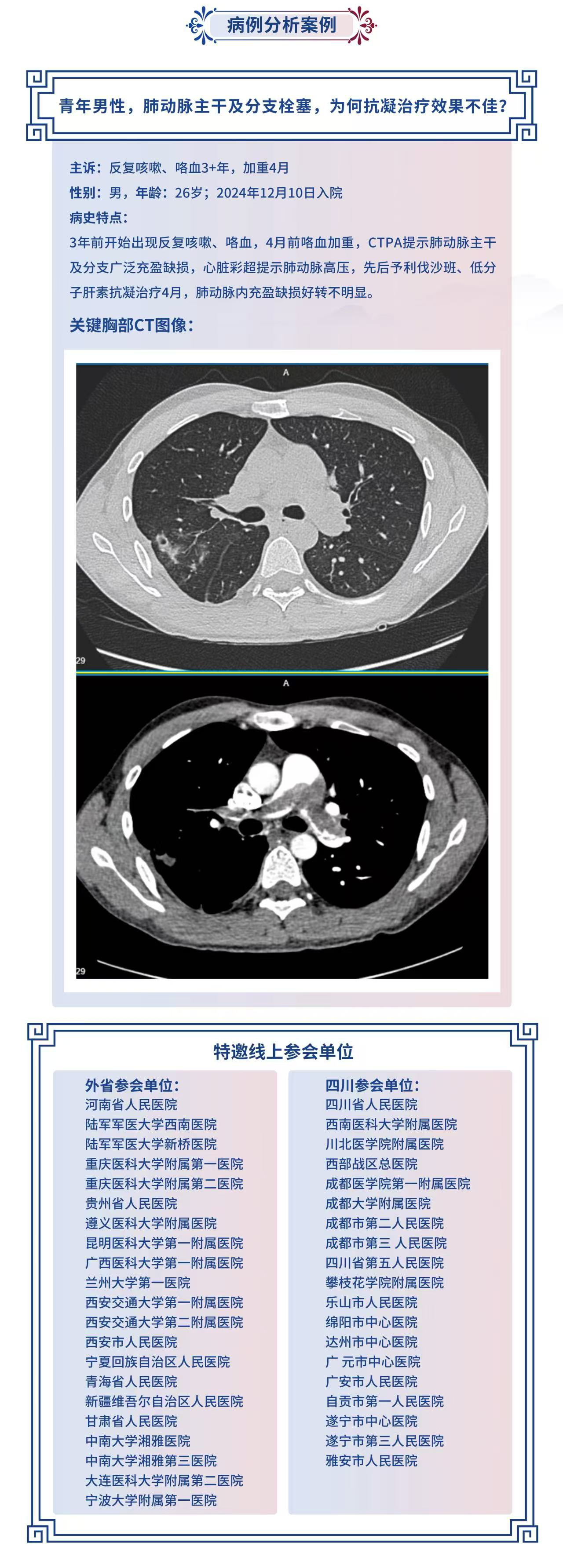 壹生直播青年男性,肺动脉主干及分支栓塞,为何抗凝治疗效果不佳?【华西呼吸在线(第49期)】