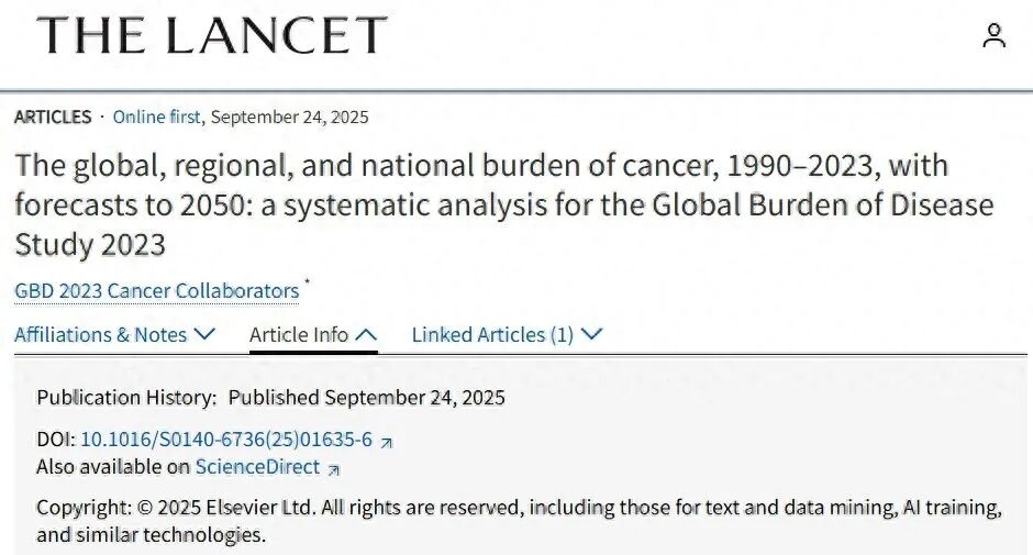 就在最近,柳叶刀上发表了一项由华盛顿大学健康指标与评估研究所数千名研究人员进行的研究,研究显示全球癌症负担持续攀升,且该数值还在不断增加。
