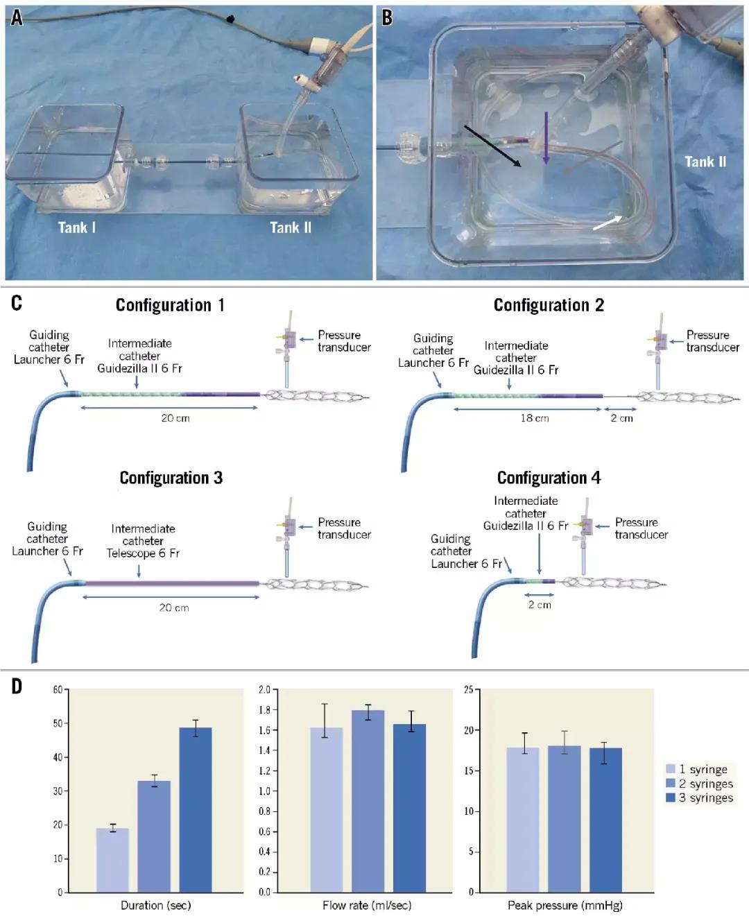 台面模型观察了延长导管不同的插入深度以及与NeVa之间的距离进行测试(不详细介绍,方法值得研发血栓抽吸设备的借鉴)。