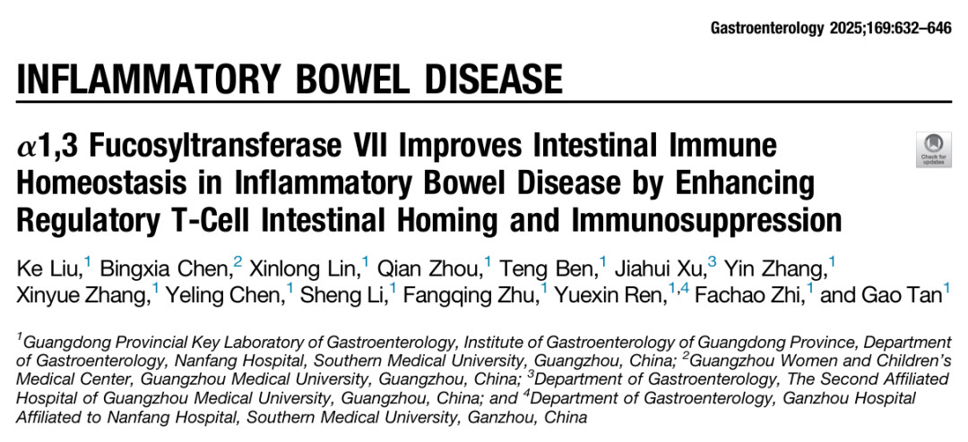 本期为大家带来《α1,3岩藻糖基转移酶Ⅶ通过增强调节性T细胞肠道归巢和免疫抑制改善炎症性肠病的肠道免疫稳态》,敬请关注!