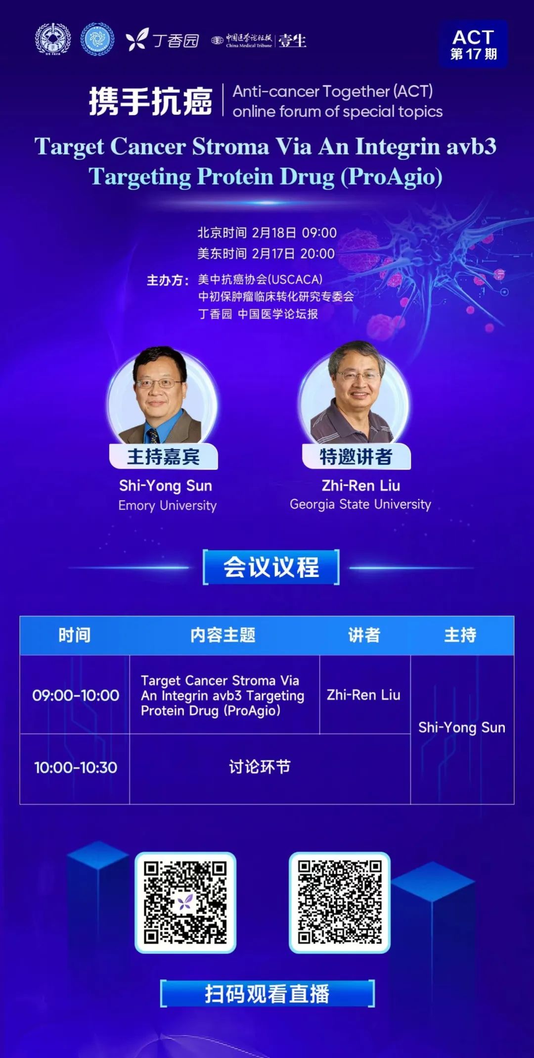 为促进国际癌症诊疗和防治的合作与发展,自2022年10月起,美中抗癌协会(USCACA)发起了“携手抗癌|Anti-cancer Together (ACT) online forum of special topics系列线上活动”,邀请国内外抗癌领域基础和转化的领军专家参与其中,备受同道关注,收获累累硕果。