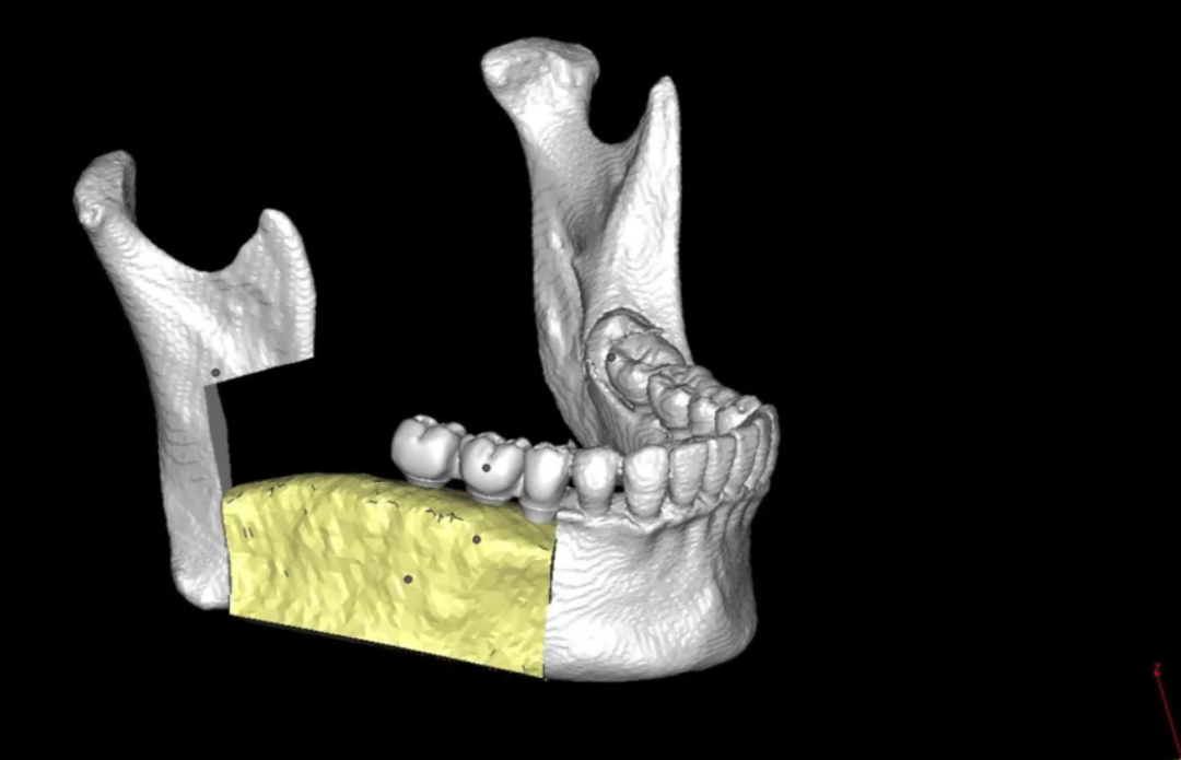 借助先进的数字化外科设计技术,专家团队在术前就精准规划了肿瘤切除的范围、切取自体骨瓣的位置和外形、种植体植入的位置等重要细节。