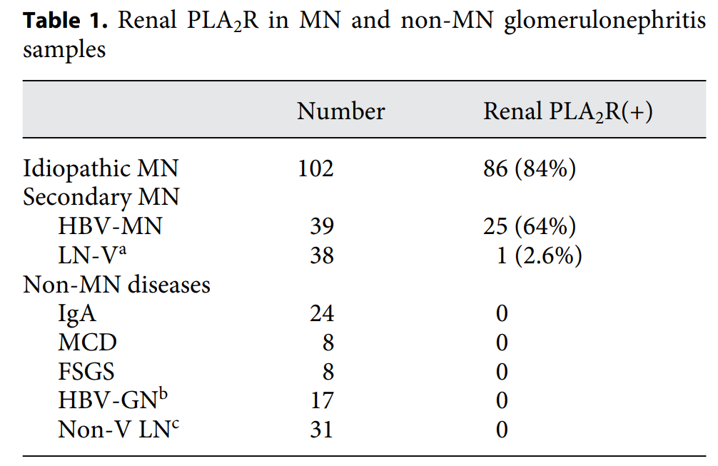 荧光:6G,IgA、IgG、IgM、C3、K、λ(-)Fib、C1q、C4d、PLA2R(-)