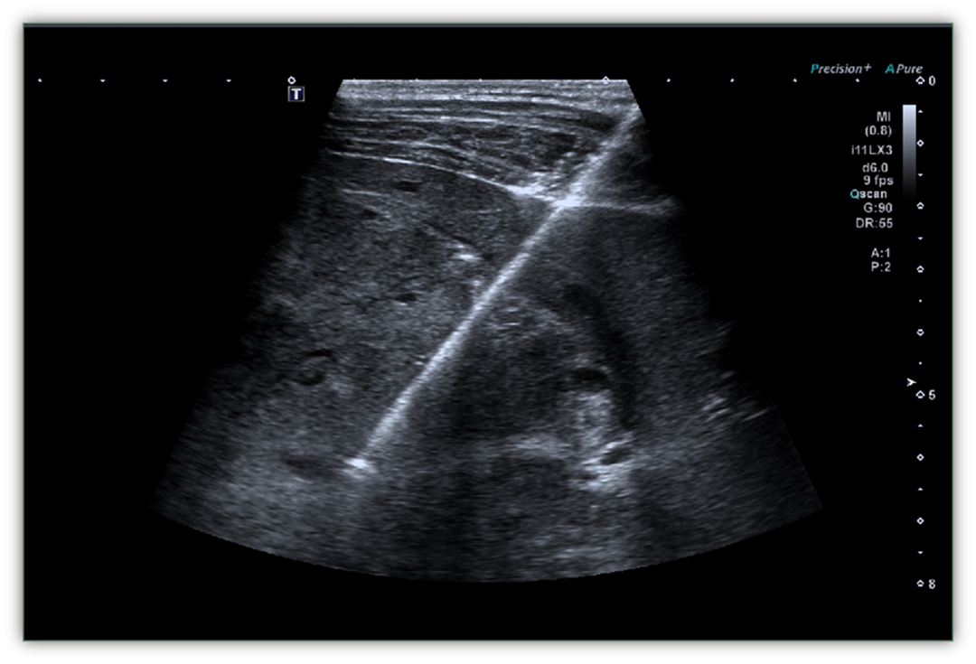 2.微创取样(精准取材):在超声的实时引导下,将穿刺针准确插进肿块,取出少量组织样本。