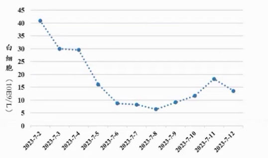 复查血常规,白细胞上升到4×10⁹/L,中性粒细胞百分比94.3%,CRP和降钙素原明显升高,肌钙蛋白3.307ng/mL提示心肌损伤,肌酐186μmol/L。入院后血NGS提示变黑普雷沃菌,血培养提示缓症链球菌和唾液链球菌。腰穿结果显示,脑脊液压力240mmH₂O,呈白色透明状,白细胞14个/μL,蛋白68.4mg/dL,脑脊液NGS阴性,肿瘤标志物和甲功正常。