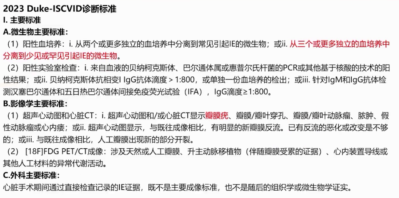根据2023年修订版杜克(Duke)感染性心内膜炎标准,明确的心内膜炎诊断包括病理学标准和临床诊断标准。