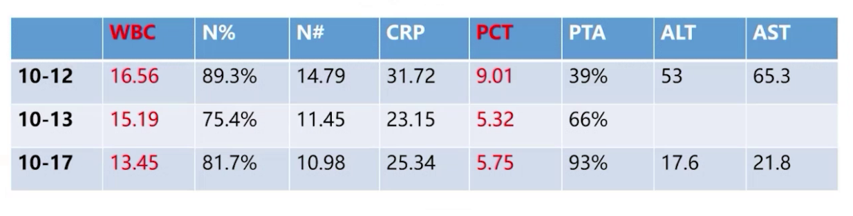 治疗过程中,患者体温在更换药物前已有好转,更换药物后体温平稳,肺部CT显示右肺下叶感染性病灶明显好转,炎症指标也呈好转趋势,但PCT未进行性下降,略有升高,这引发了对是否存在其他感染灶的疑虑。