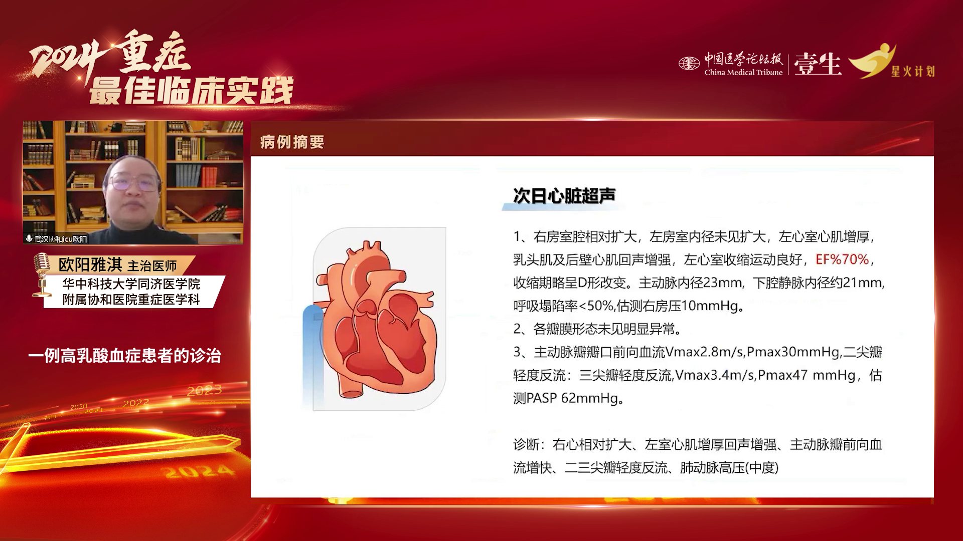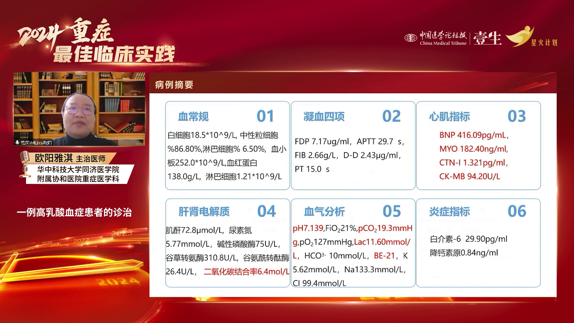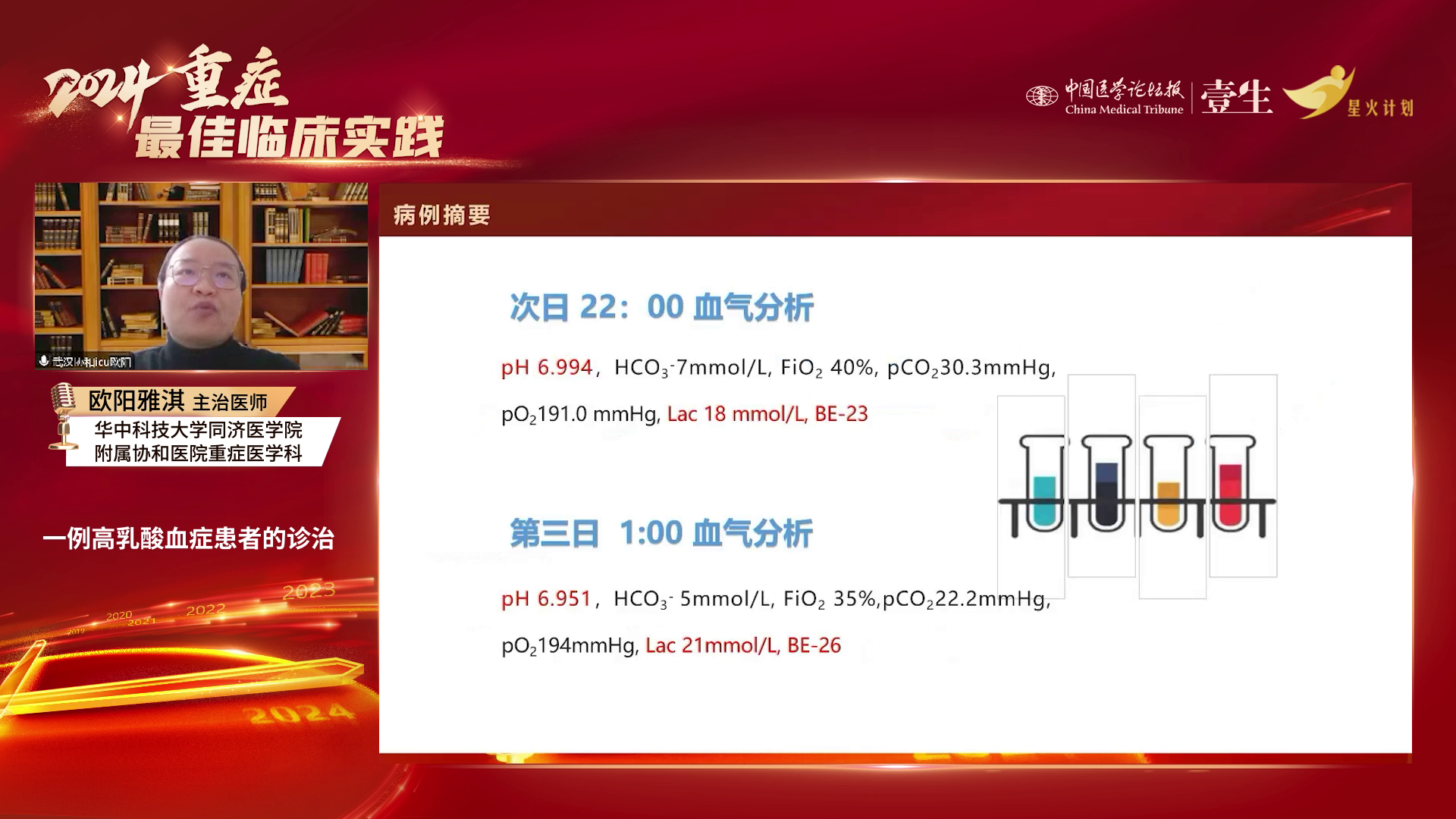 以支持治疗为主,非特异性经验性治疗包括抗氧化剂、辅助因子和补充剂,以及运动和饮食疗法。某些药物会加重病情,如抗癫痫发作药物(丙戊酸及其衍生物、卡马西平、苯妥英钠、苯巴比妥等)、抗生素(氨基糖苷类)、抗逆转录病毒药物(利奈唑胺等)、二甲双胍、他汀类药物、丙泊酚等。当患者出现乳酸性酸中毒导致的严重乳酸血症(pH值小于7.1),应立即进行碳酸氢盐治疗,目标是逆转基础疾病,维持动脉血pH值大于7.1。若患者有重度急性肾损伤,维持pH值大于7.3可能存在危害。使用碳酸氢盐可能增加二氧化碳分压、加速乳酸盐产生、降低离子钙浓度、升高纤维蛋白原浓度,此时可在通气充分时快速输注碳酸氢盐并重复给药。若存在容量超负荷且肾功能受损,可启动透析治疗。本病例中患者启动了VA-ECMO循环支持、积极纠酸处理,并后期进行血液净化治疗启动透析维持酸碱平衡,但最终因严重休克导致微循环障碍,病情难以逆转。