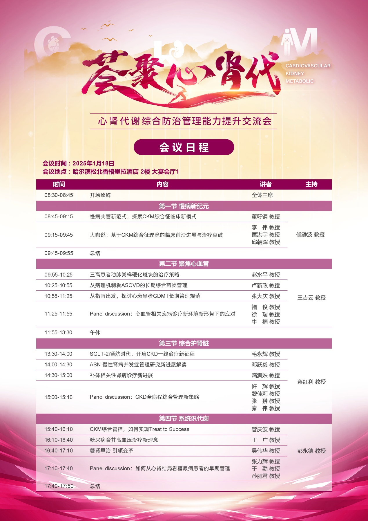 心肾代谢综合防治管理能力提升交流会将带来心肾代谢综合征领域的最新动态和前沿技术,促进不同学科交流和合作,更新知识储备,提高自身的专业素养和临床实践能力。更多精彩内容,就在1月18日会议现场,让我们共同关注。