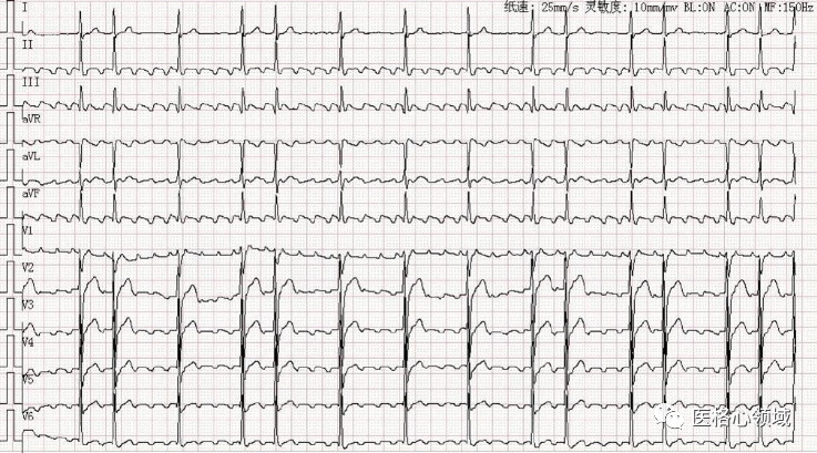 4、每个房性P波后大多均有室上性QRS波,PR间期0.12~0.20秒;
