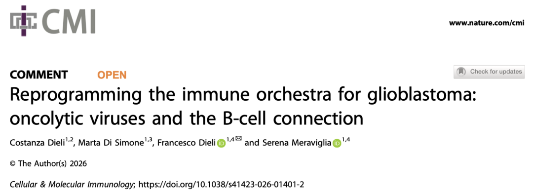 值得一提的是,意大利巴勒莫大学生物医学研究中心的免疫学专家Francesco Dieli教授针对本研究在CMI发表题为“重新编程免疫交响乐团以对抗胶质母细胞瘤:溶瘤病毒与B细胞的关联”的评述。Dieli教授指出,此项研究有力印证了胶质母细胞瘤抗肿瘤免疫认知范式的全新转变,凸显了全身免疫重编程以及肿瘤外抗原呈递的重要价值。该研究揭示了以脾脏为核心、依赖B细胞介导的CD8⁺T细胞启动机制,打破了仅聚焦肿瘤局部的传统抗肿瘤免疫认知,也为溶瘤病毒疗法联合免疫检查点抑制剂治疗构建了理论框架。