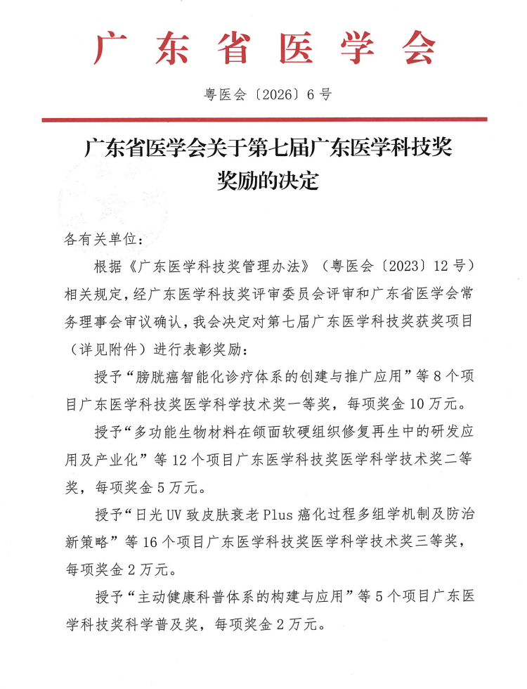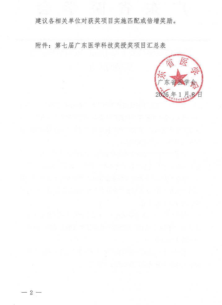 2026年1月21日,第七届广东医学科技奖颁奖大会在广州香格里拉大酒店隆重举行。