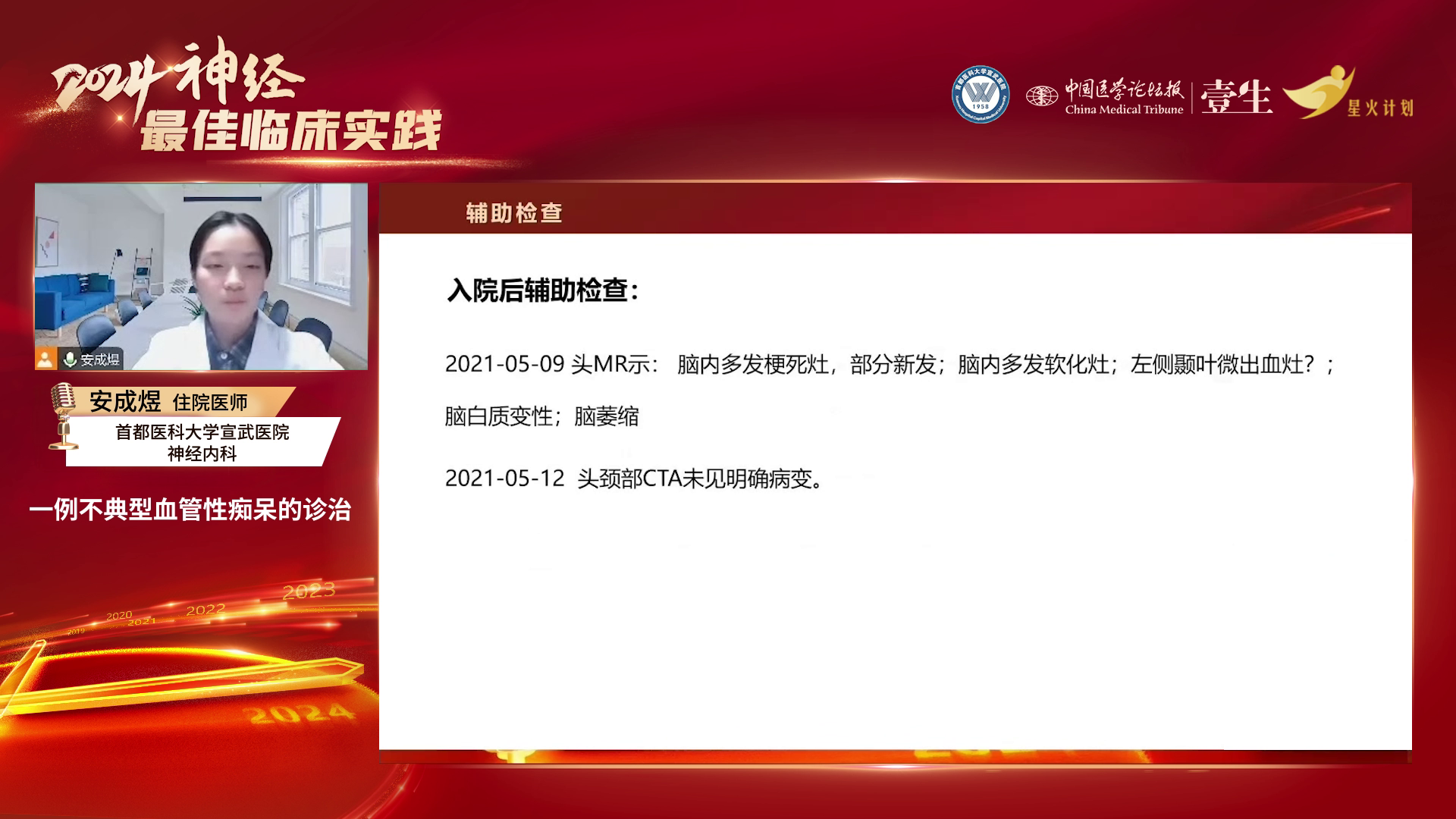 3)免疫介导的血管炎:患者全脑萎缩及脑白质病变支持此诊断方向,但病史较长且无发热感染等伴随症状,故也不支持。