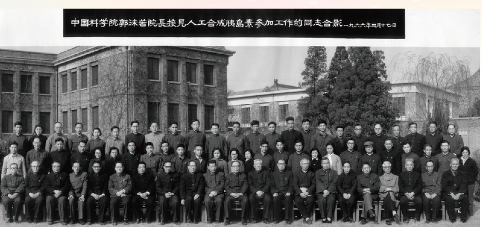 图1 1966年,中国科学院郭沫若院长接见人工合成胰岛素参加工作的同志