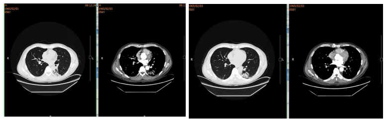 治疗一个月后病灶稳定,近期复查肺部病灶已明显完全吸收。