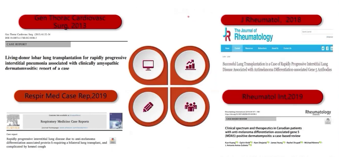 病史+体征+肌炎抗体+病理,确诊为MDA5阳性无肌病性皮肌炎相关间质性肺炎。