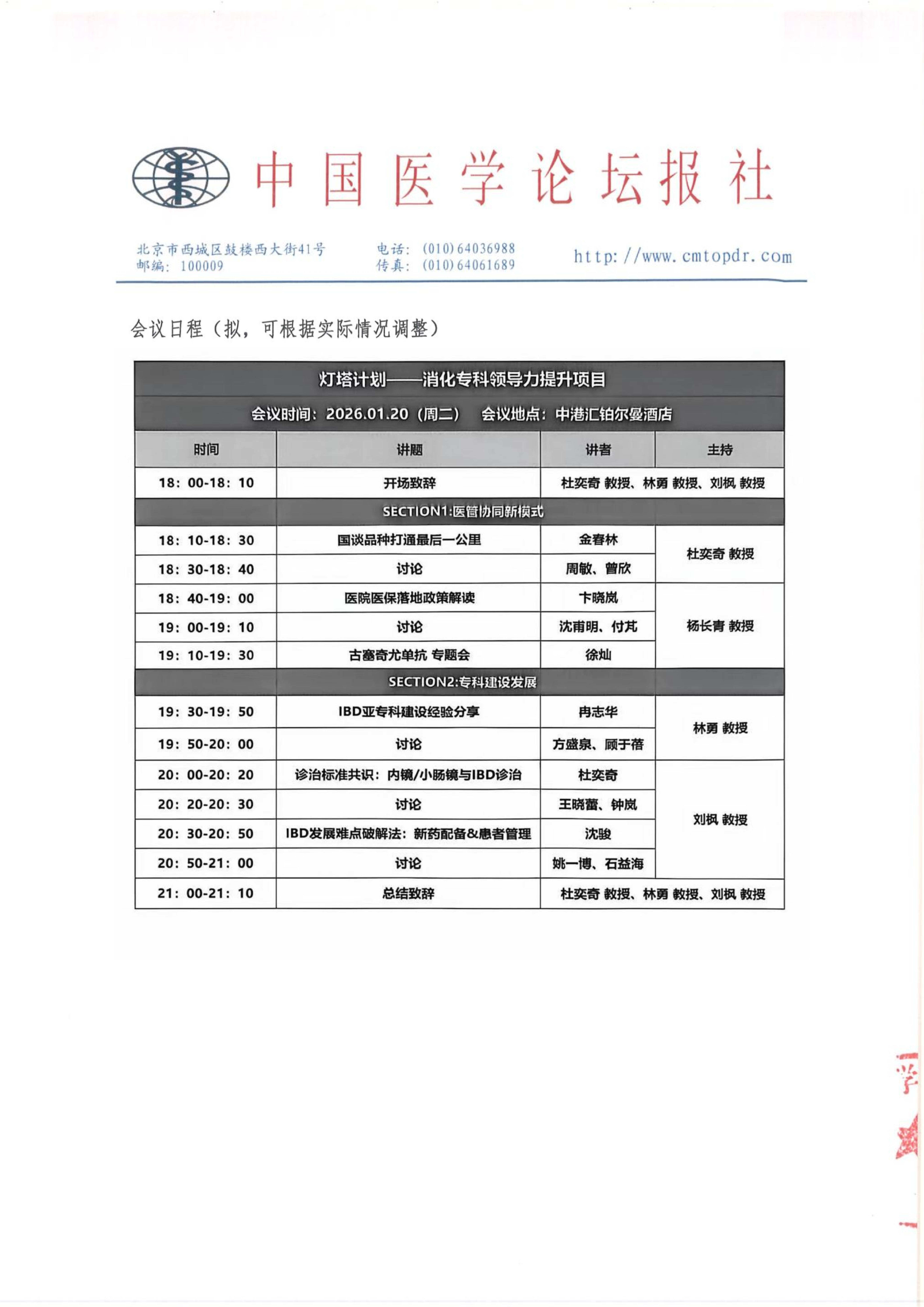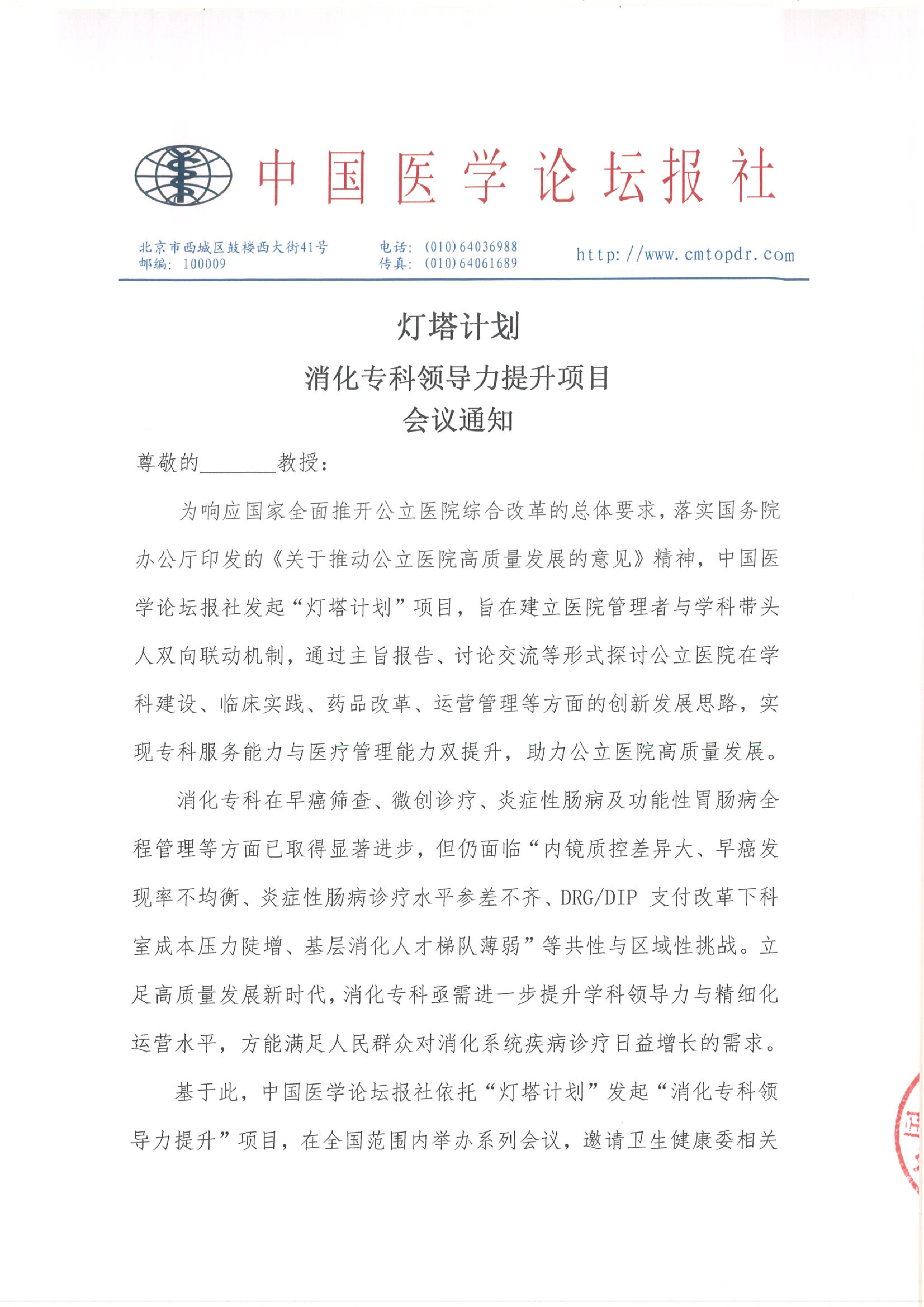 【会议通知】灯塔计划--消化专科领导力提升项目 1.20 上海