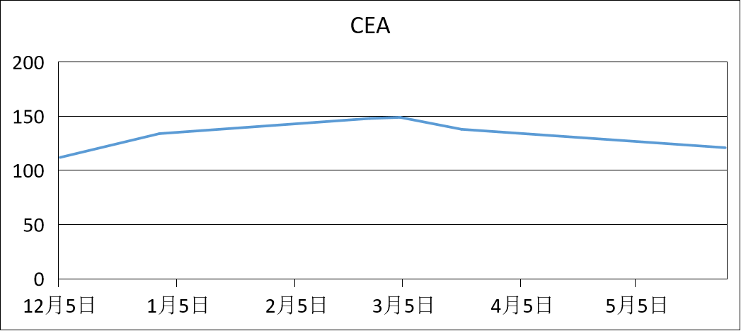 疗效评估:至2018年12月前CEA正常值范围内,影像学未见明显复发和转移
