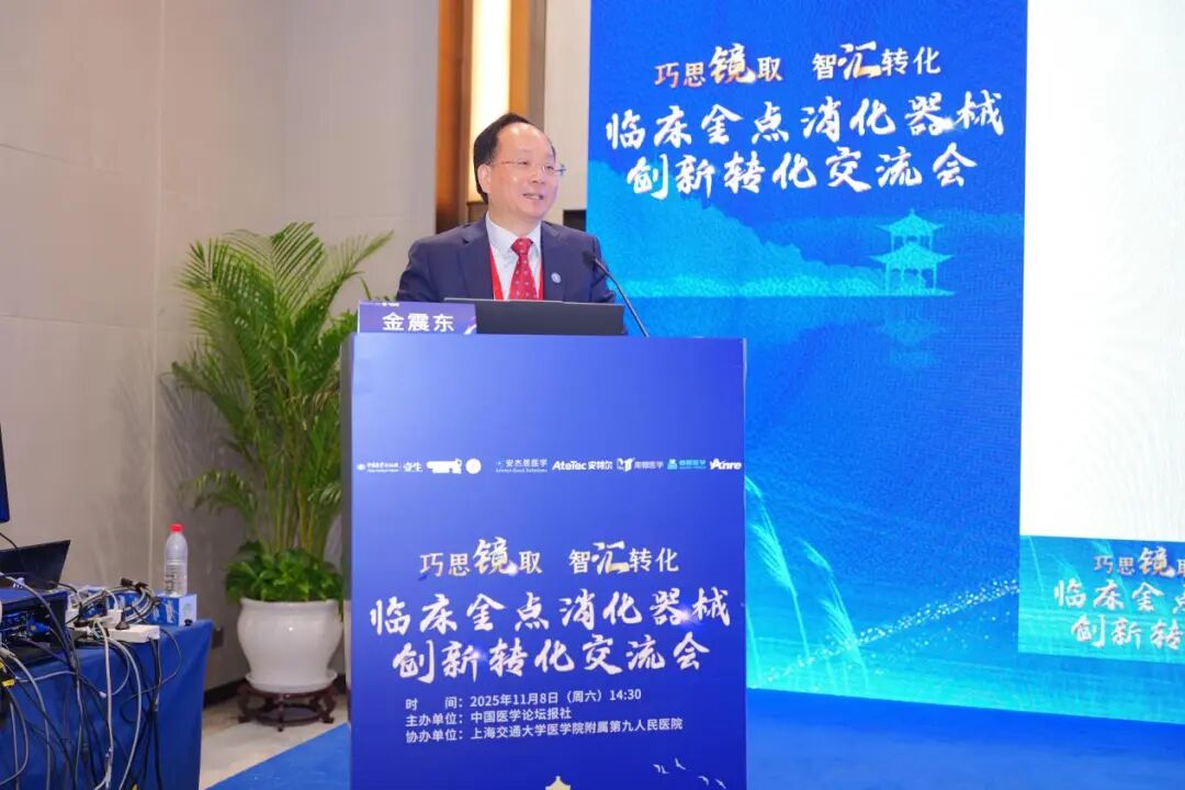 11月8日,由中国医学论坛报社主办、上海交通大学医学院附属第九人民医院(以下简称上海第九人民医院)协办的“巧思‘镜’取 智‘汇’转化——临床金点消化器械创新转化交流会”,在杭州举办的中华医学会2025年消化内镜学年会上成功召开。中华医学会消化内镜学分会主任委员、中国医学论坛报消化编委会主编、上海长海医院金震东教授,中国医学论坛报消化编委会编委、上海第九人民医院王东教授,中国医学论坛报社郑桂香副总编,以及来自临床、法律、知识产权、科研院所和企业的38位专家同道出席了会议。会议由兰州大学第二医院黄晓俊教授和王东教授共同主持。