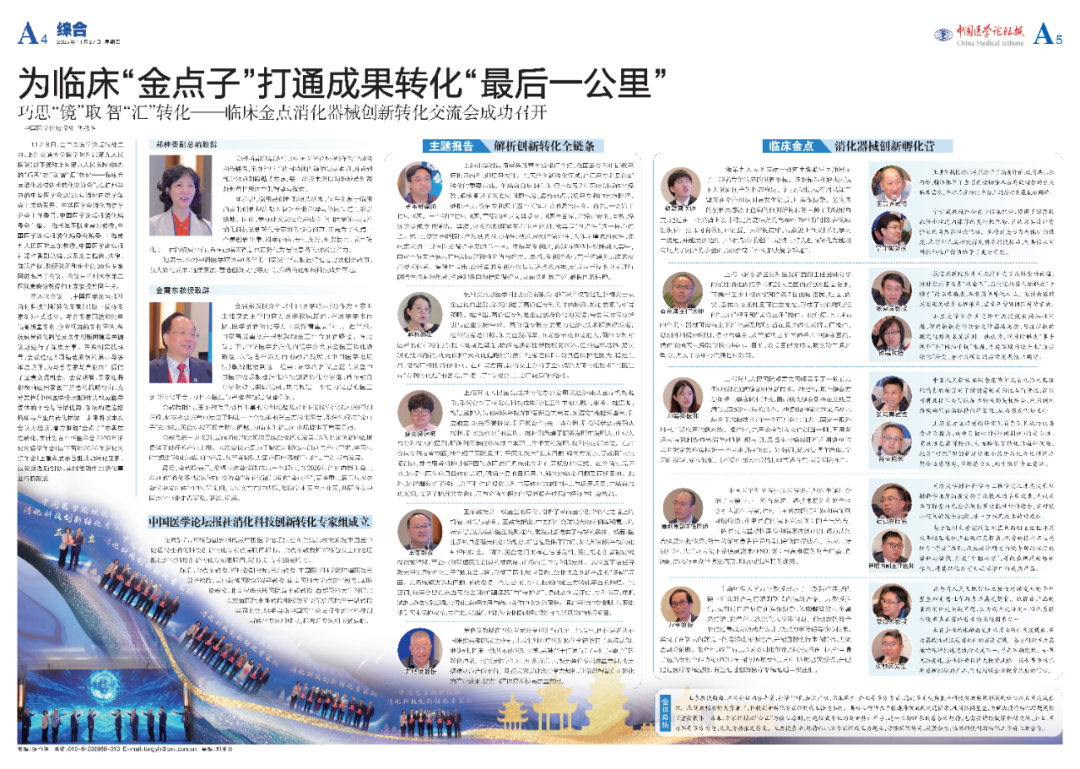 她指出,临床是创新的源头活水,但许多源于临床痛点的创新想法都因缺乏专业指导与协同渠道而难以落地。因此,举办此次交流会并成立中国医学论坛报社消化科技创新转化专家组的核心初衷,正是为了构建一个集创新征集、科学评估、专利支持、研发协同、成果转化于一体的权威平台,旨在让临床智慧真正转化为造福患者的现实生产力。