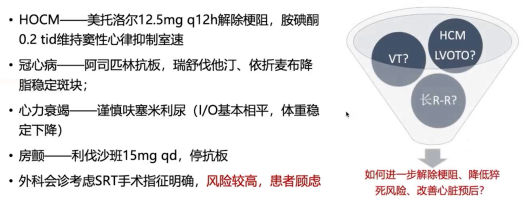 ·室速治疗:指南推荐使用胺碘酮、美西律等药物控制。此患者加用美托洛尔和胺碘酮,但仍存在一些问题,如活动后胸闷、室速控制担忧及长间歇风险。