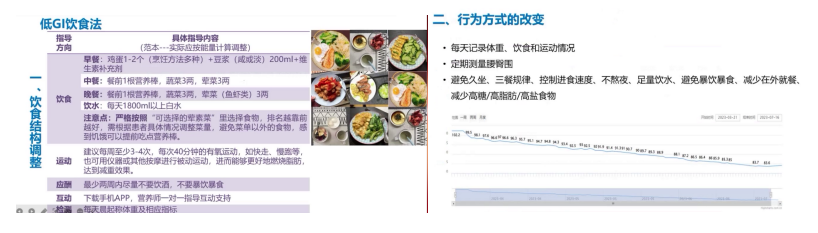 具体治疗方案包括内科综合治疗(双水平无创呼吸机治疗联合合并症对症治疗)、积极内科减重(营养科定制三餐饮食能量搭配及体重管理,结合适量运动)、饮食结构调整(低糖饮食,控制早中晚餐能量摄入)、生活方式干预指导(控制体重,定期监测体重,避免久坐,三餐规律等)。