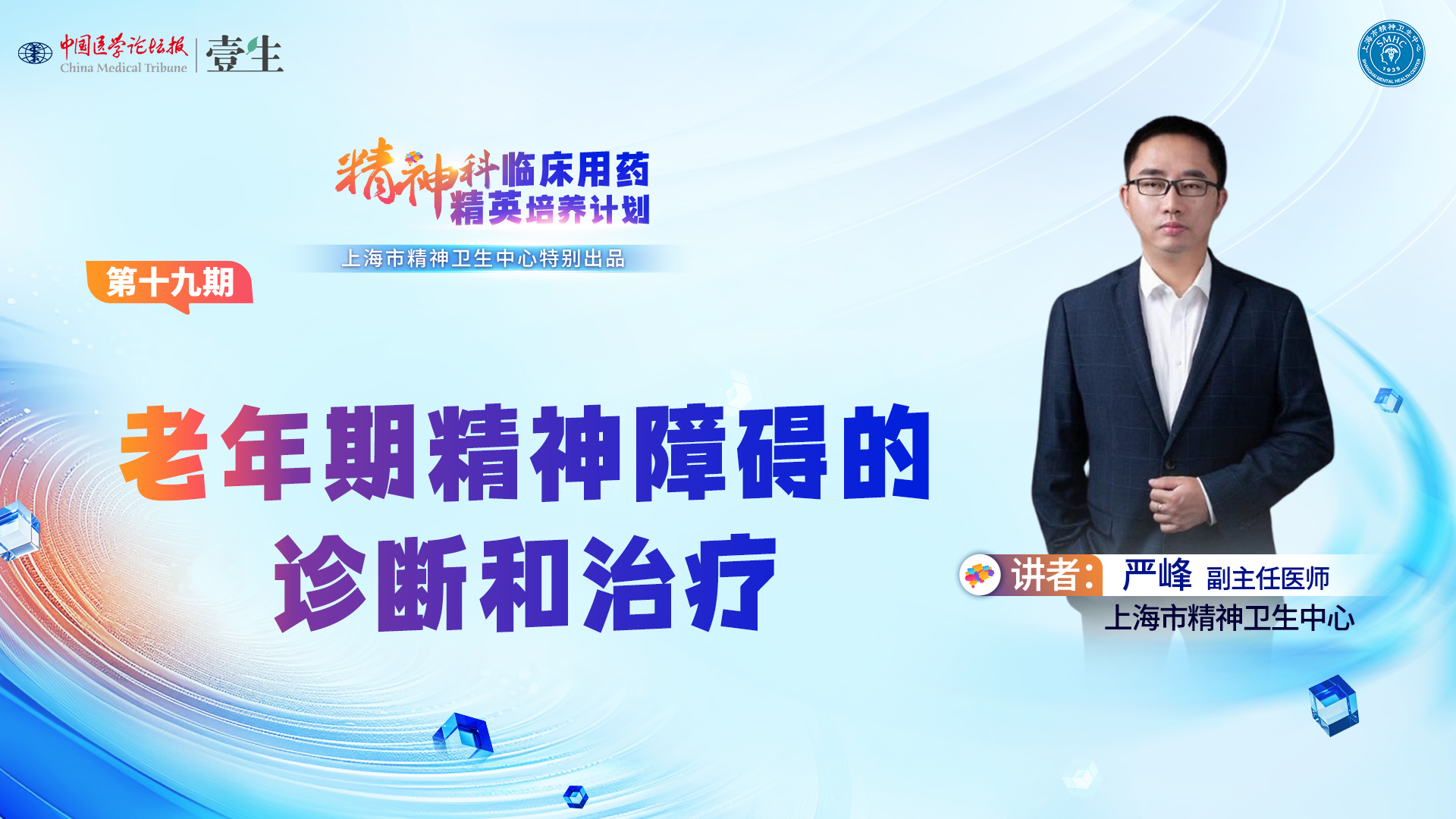 精神科临床工作中,如何科学诊断?如何精准用药?如何安全管理不良反应?由上海市精神卫生中心主导的《精神科临床用药精英培养计划》集结多位权威专家,全面讲解精神科诊疗核心技能与最新进展。课程内容涵盖精神科基础技能、常见障碍诊治、特殊人群治疗、药物合理应用及不良反应处理,为临床医生提供系统、实用的学习平台。本期讲题:老年期精神障碍的诊断和治疗授课专家:严峰 副主任医师上海市精神卫生中心上线时间:1月14日 19:00系列课程安排:本课程由浙江大冢制药有限公司支持