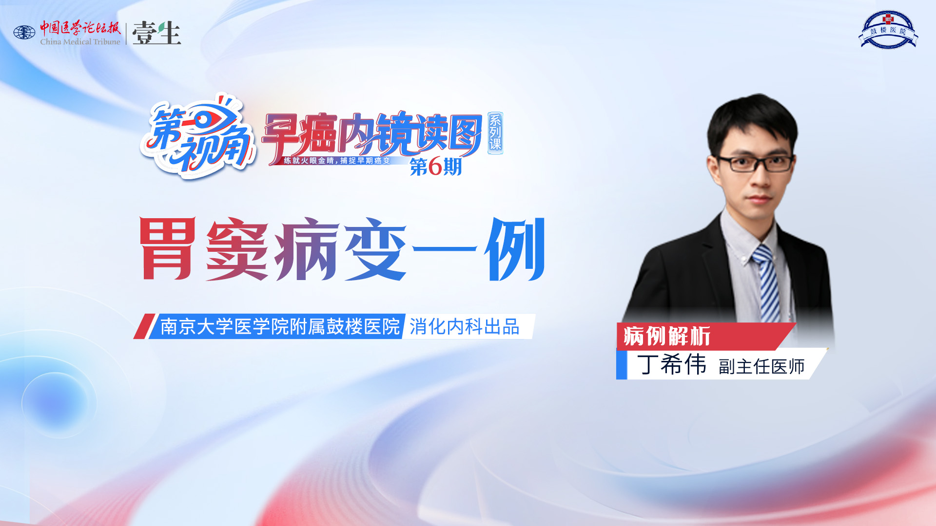 点我填写《第一视角——早癌内镜读图》后续课程需求调研点击右上方“测验”按钮,完成本节随堂测试系列课背景南京大学医学院附属鼓楼医院消化内科王雷主任医师指导、早癌亚专科策划的轻量系列课《第一视角 | 早癌内镜读图》,带你以术者第一视角,沉浸式解析早癌内镜图像,高效提升诊断思维和能力。首期于9月18日,在壹生APP·消化频道播出,欢迎关注,揭开真相。第6期胃窦病变一例上线时间12月25日(周四)病例解析丁希伟 副主任医师南京大学医学院附属鼓楼医院消化内科本系列课程由南京鼓楼医院消化内科内镜团队精心制作,团队年均完成内镜检查10万余例,早癌检出率位居全国前列,拥有丰富的临床经验和教学经验。