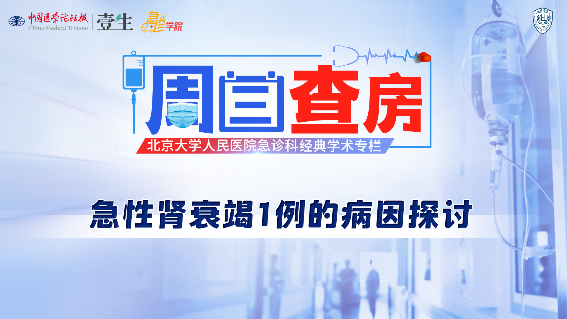 栏目介绍北京大学人民医院急诊科经典学术活动《周三查房》,自2020年11月起入驻中国医学论坛报·壹生急诊学院,经典病例结合急诊科核心知识点讲解,全部免费开放,供临床同道交流学习。更多内容,请安装壹生App,关注“急诊”频道。课程信息讲题:急性肾衰竭1例的病因探讨讲者:张海燕 医生讨论专家:曹宝平等上线时间:4月17日(周五)温馨提示:微信搜索“壹生急诊学院”,关注后免费获得上课提醒,精彩内容不错过。