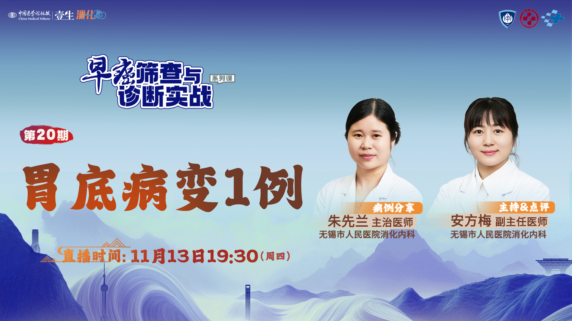 系列课背景我国消化道肿瘤高发且死亡率高,早期筛查能显著改善患者预后和生存率。目前,消化道早癌术前诊断技术快速进步。复旦大学附属中山医院内镜中心技术领先,团队卓越。为提升基层医生在消化道早癌内镜诊疗方面的能力,2024年,中国医学论坛报社携手复旦中山内镜中心周平红教授、胡健卫教授,推出《早癌筛查与诊断实战》系列课。通过解析食管、胃、肠优质经典病例,结合实战讨论,旨在提升临床医生的内镜操作及早癌筛查诊断能力。系列课隔周周四19:30更新1期,欢迎关注。第20期胃底病变1例直播时间11月13日(周四)19:30病例分享朱先兰 主治医师无锡市人民医院消化内科主持&点评 专家安方梅 副主任医师无锡市人民医院消化内科策划&审核 专家周平红 教授 胡健卫 教授复旦大学附属中山医院内镜中心陈振煜 教授南方医科大学南方医院消化内科内容安排本课程由奥林巴斯(北京)销售服务有限公司上海分公司支持