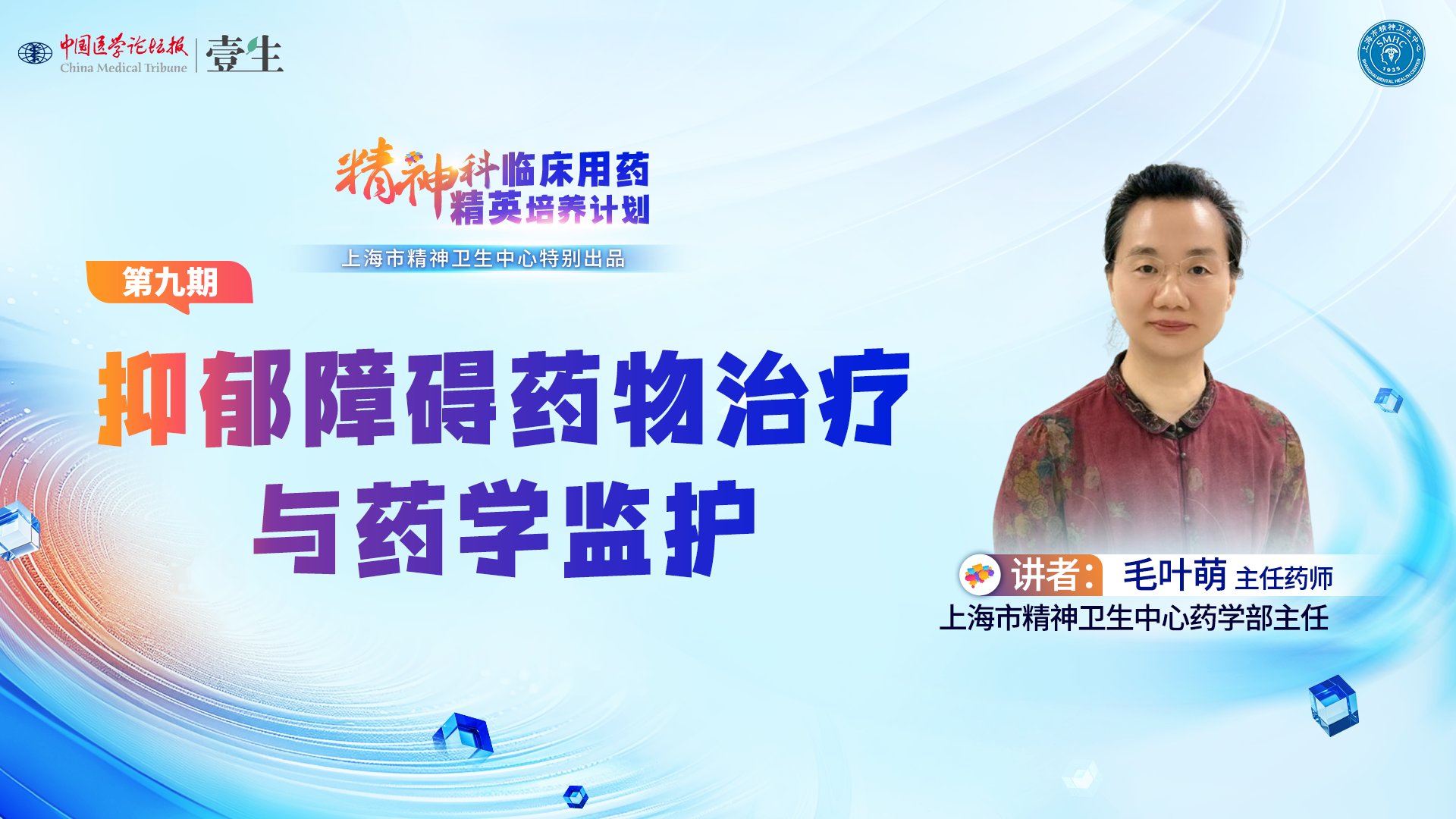 精神科临床工作中,如何科学诊断?如何精准用药?如何安全管理不良反应?由上海市精神卫生中心主导的《精神科临床用药精英培养计划》集结多位权威专家,全面讲解精神科诊疗核心技能与最新进展。课程内容涵盖精神科基础技能、常见障碍诊治、特殊人群治疗、药物合理应用及不良反应处理,为临床医生提供系统、实用的学习平台。本期讲题:抑郁障碍药物治疗与药学监护授课专家:毛叶萌 主任药师上海市精神卫生中心药学部主任上线时间:11月13日 19:00系列课程安排:本课程由浙江大冢制药有限公司支持