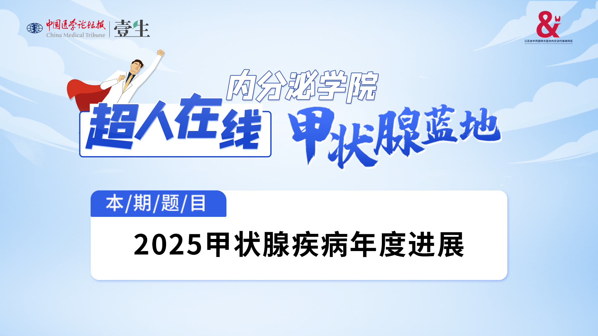 『超人在线·甲状腺蓝地』由南京中医药大学附属中西医结合医院内分泌代谢病院区刘超教授和徐书杭教授共同策划,通过系列讲座、病例讨论、新知快递、焦点访谈等方式,从基础知识到临床实践,全面介绍甲状腺的解剖、生理和病理,重点关注各类甲状腺疾病诊治的重点、难点和热点问题,并针对最新指南给予解读和评述,以期为广大医疗从业人员搭建经典、权威、全方位和多视角的甲状腺和甲状腺疾病学习、讨论和交流的平台。本期讲题2025甲状腺疾病年度进展主讲嘉宾刘超 教授南京中医药大学附属中西医结合医院