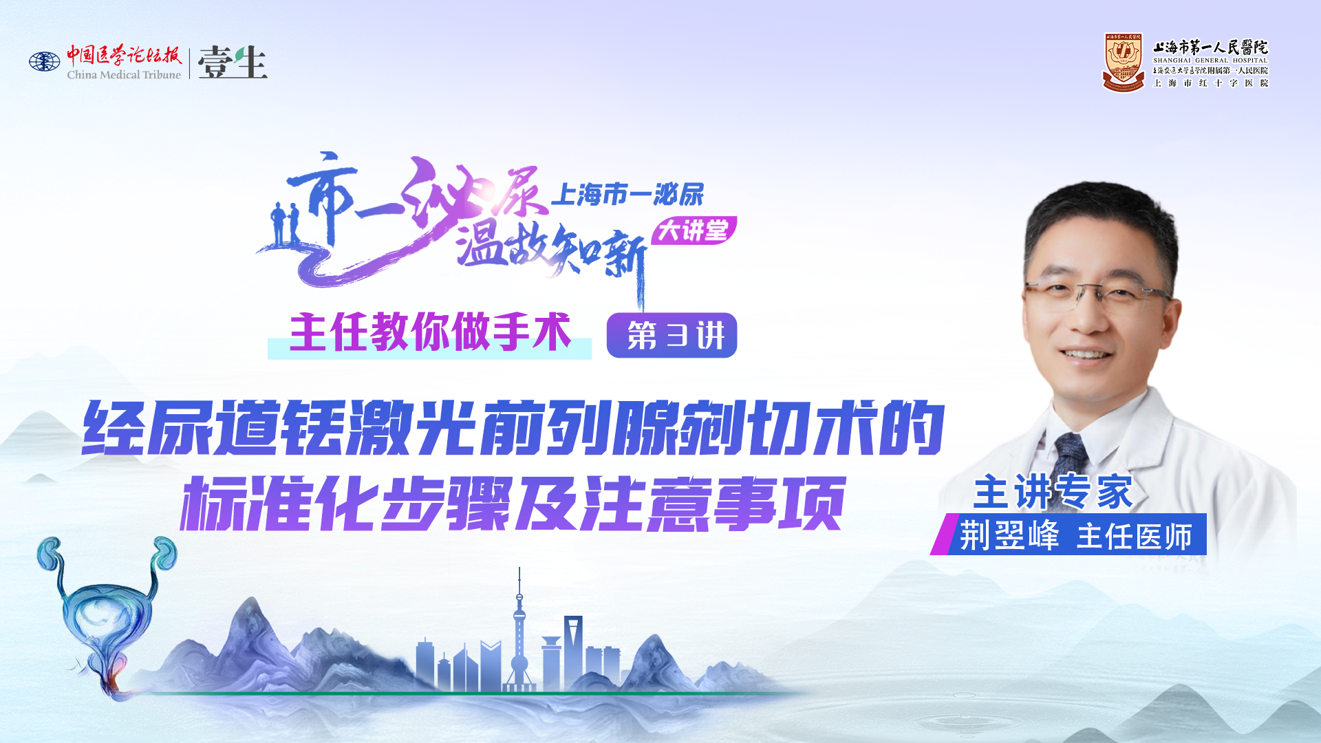 【温故知新·上海市一泌尿大讲堂】由上海交通大学医学院附属第一人民医院泌尿外科出品,聚焦泌尿外科领域热点与前沿的临床诊疗议题。10月起,特开设“主任教你做手术”专题系列课,由资深专家亲授,围绕泌尿外科经典手术中的难点与关键步骤,进行系统剖析与实操解析,助力临床医师提升手术技能、优化诊疗策略。每周一晚19:00于壹生平台独家直播,敬请关注!【本期讲者】荆翌峰 主任医师【本期主题】前列腺剜除手术越来越成为治疗BPH的主流手术,但是,剜除手术存在学习曲线长,易发生术后尿失禁的情况。利用铥激光精准切割及优异止血功能,上海交通大学医学院附属第一人民医院开创了铥激光前列腺剜切术,建立了标准手术步骤,容易学习掌握,术后尿控好,术中出血少,视野清晰,安全有效。这一术式越来越广泛的学习应用。