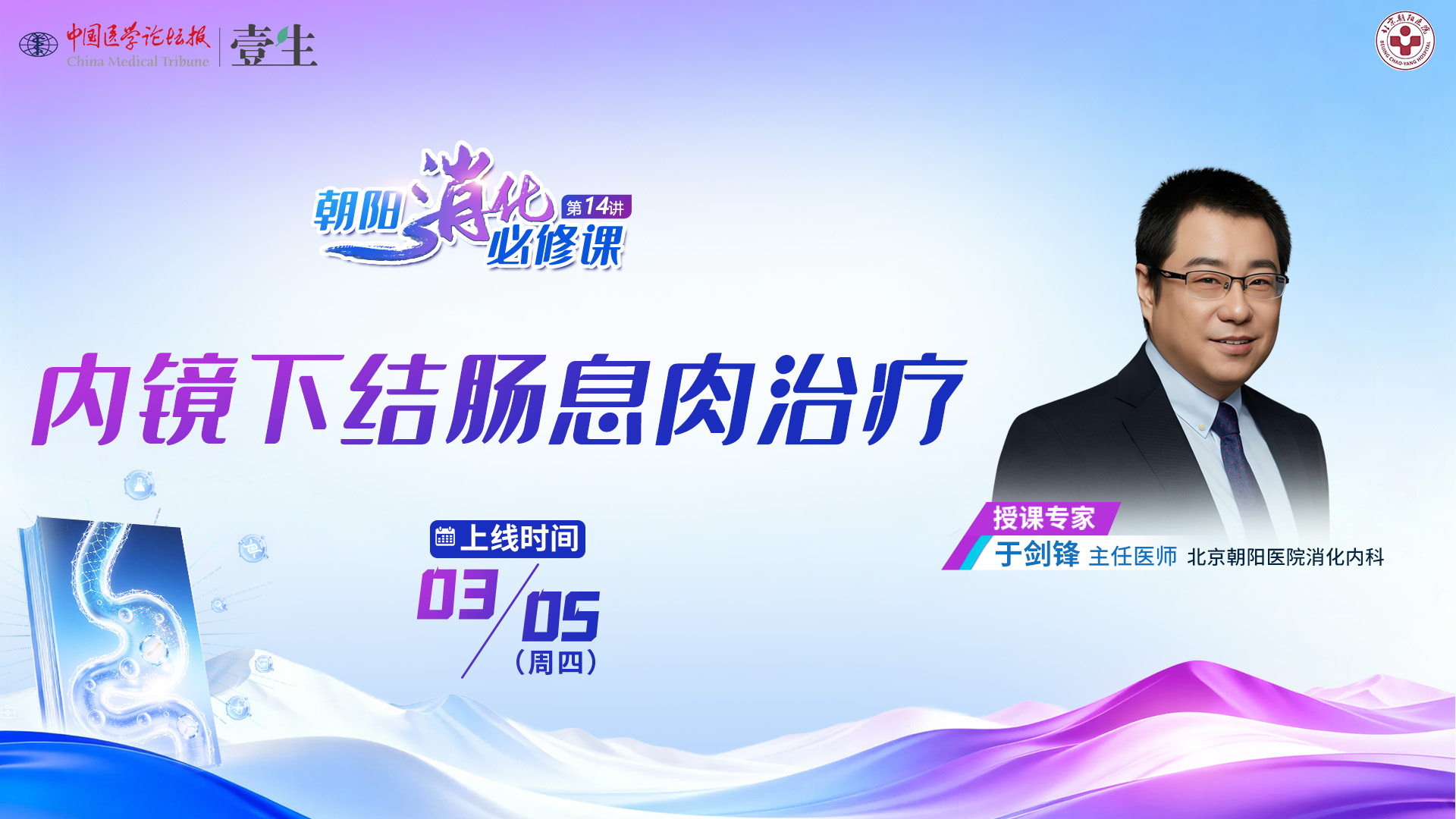 系列课背景壹生消化学院特别邀请首都医科大学附属北京朝阳医院消化内科副主任于剑锋主任医师,精心策划了《朝阳消化必修课》栏目,涵盖消化疾病指南解读、消化内镜指南精粹分享、内镜实战操作经验面对面模块,旨在通过消化疾病及消化内镜的指南学习与实践,助力各位消化医生,在新的一年里实现专业技能质的飞跃。系列课隔周周四更新1期,欢迎关注。第14期内镜下结肠息肉治疗上线时间3月5日(周四)授课专家于剑锋 主任医师北京朝阳医院消化内科课程详情