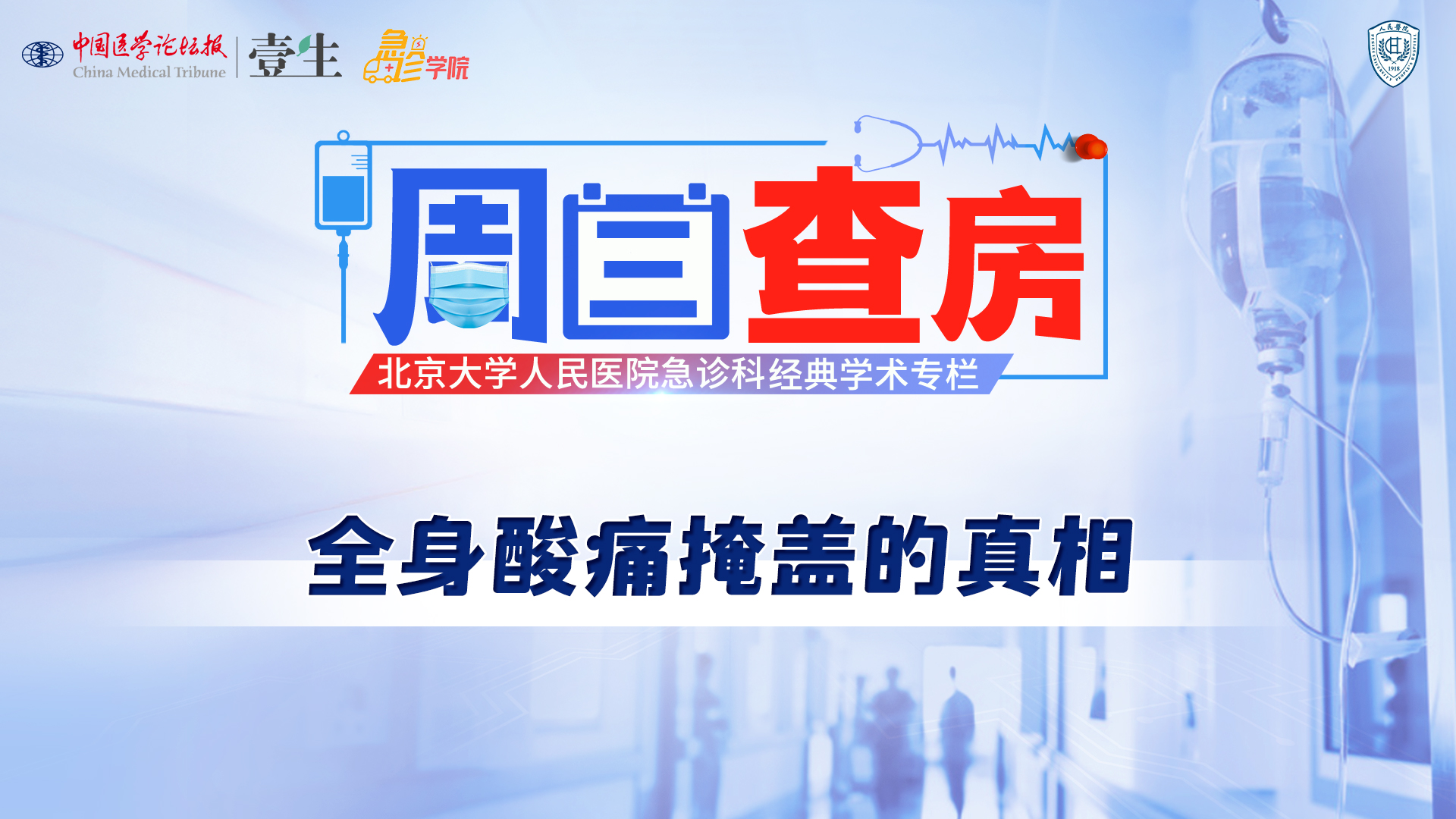 栏目介绍北京大学人民医院急诊科经典学术活动《周三查房》,自2020年11月起入驻中国医学论坛报·壹生急诊学院,经典病例结合急诊科核心知识点讲解,全部免费开放,供临床同道交流学习。更多内容,请安装壹生App,关注“急诊”频道。课程信息讲题:全身酸痛掩盖的真相讲者:刘欢 医生讨论专家:王煜冉,董桂英等上线时间:1月14日(周三)温馨提示:微信搜索“壹生急诊学院”,关注后免费获得上课提醒,精彩内容不错过。