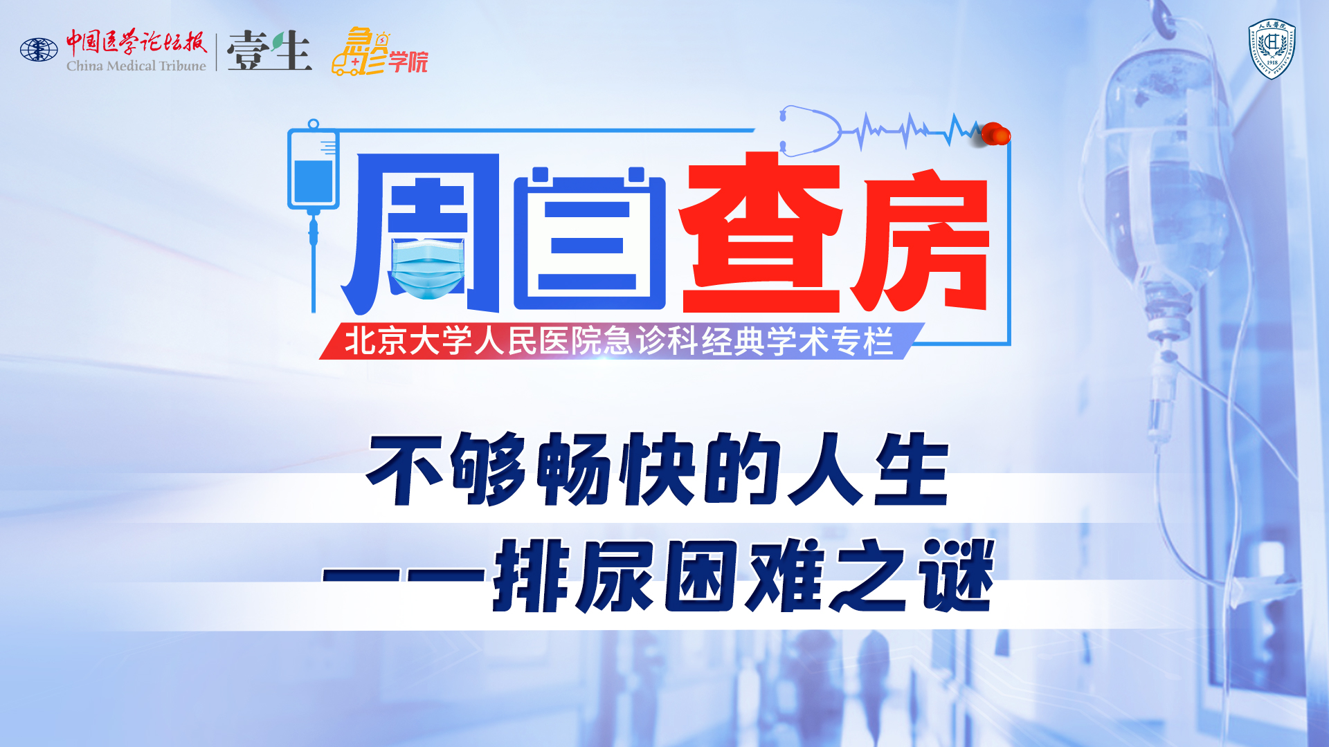 栏目介绍北京大学人民医院急诊科经典学术活动《周三查房》,自2020年11月起入驻中国医学论坛报·壹生急诊学院,经典病例结合急诊科核心知识点讲解,全部免费开放,供临床同道交流学习。更多内容,请安装壹生App,关注“急诊”频道。课程信息讲题:不够畅快的人生——排尿困难之谜讲者:窦丽稳 医生讨论专家:曹宝平等上线时间:1月23日(周五)温馨提示:微信搜索“壹生急诊学院”,关注后免费获得上课提醒,精彩内容不错过。