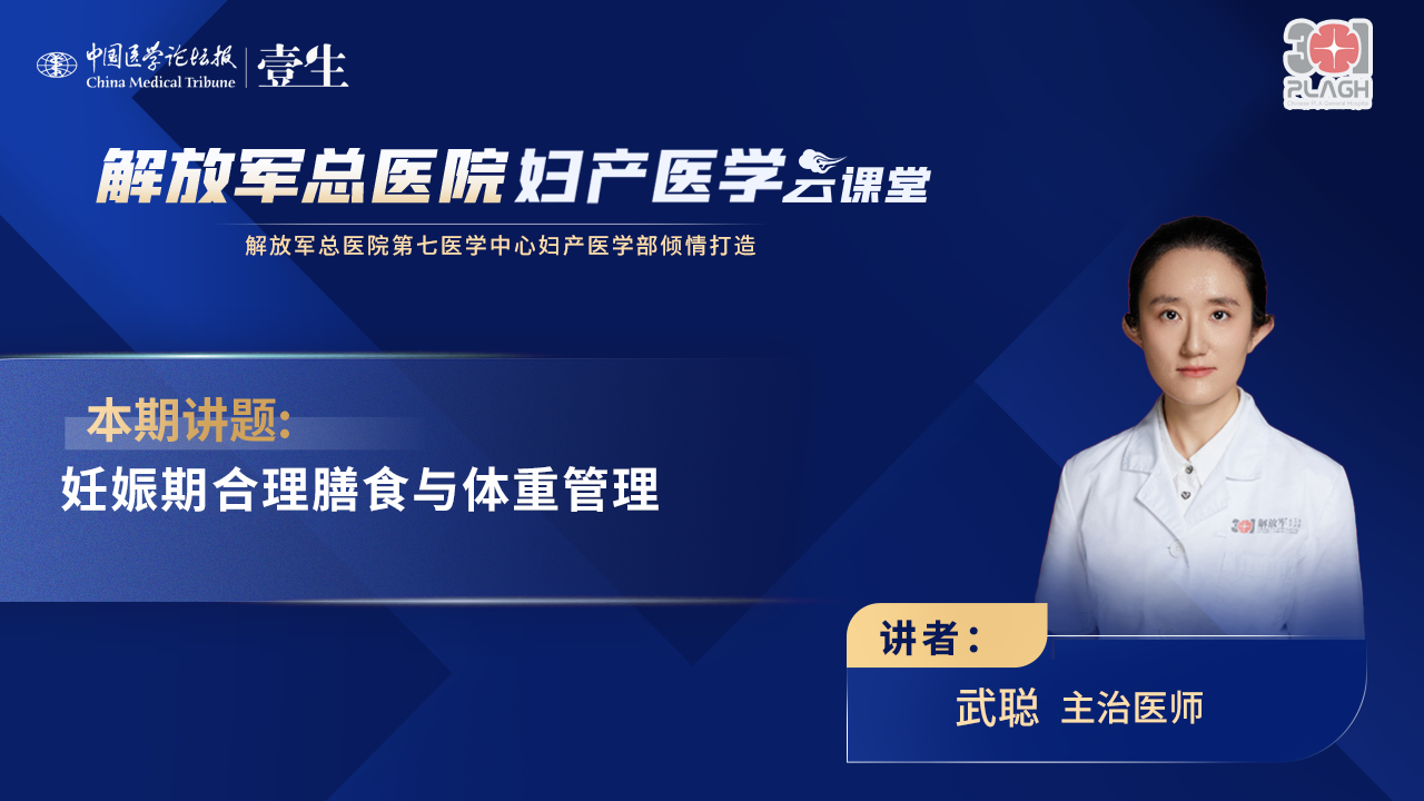 中国医学论坛报壹生妇产学院特邀解放军总医院第七医学中心妇产医学部专家团队,开设《解放军总医院妇产医学云课堂》系列专栏,每期选取妇产领域临床热点、难点话题,系统讲解妇产科疾病的诊治,梳理临床思维,规范诊疗行为。本周主题:妊娠期合理膳食与体重管理讲者:武聪 主治医师解放军总医院第七医学中心妇产医学部