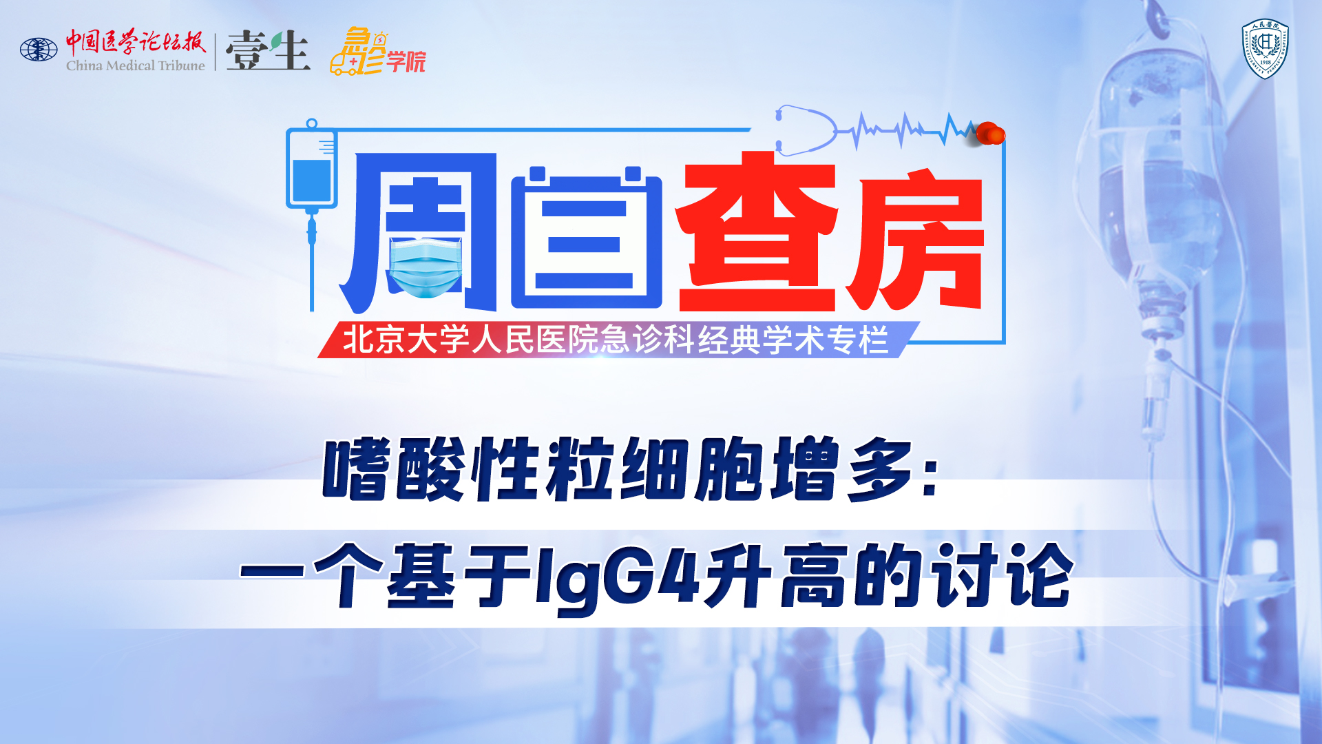 栏目介绍北京大学人民医院急诊科经典学术活动《周三查房》,自2020年11月起入驻中国医学论坛报·壹生急诊学院,经典病例结合急诊科核心知识点讲解,全部免费开放,供临床同道交流学习。更多内容,请安装壹生App,关注“急诊”频道。课程信息讲题:嗜酸性粒细胞增多:一个基于IgG4升高的讨论讲者:叶桢 医生讨论专家:马丽,余剑波等上线时间:4月1日(周三)温馨提示:微信搜索“壹生急诊学院”,关注后免费获得上课提醒,精彩内容不错过。