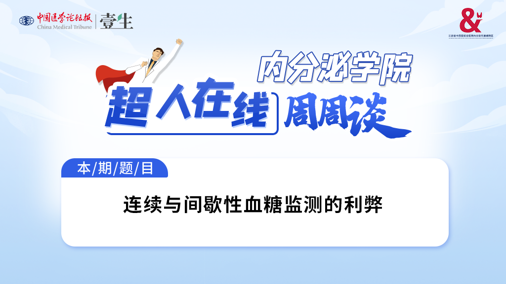超人在线·周周谈 第128期本期讲题连续与间歇性血糖监测的利弊点评嘉宾刘超 主任医师·南京中医药大学附属中西医结合医院内分泌科主讲嘉宾胡天翊 医师·南京中医药大学附属中西医结合医院内分泌科