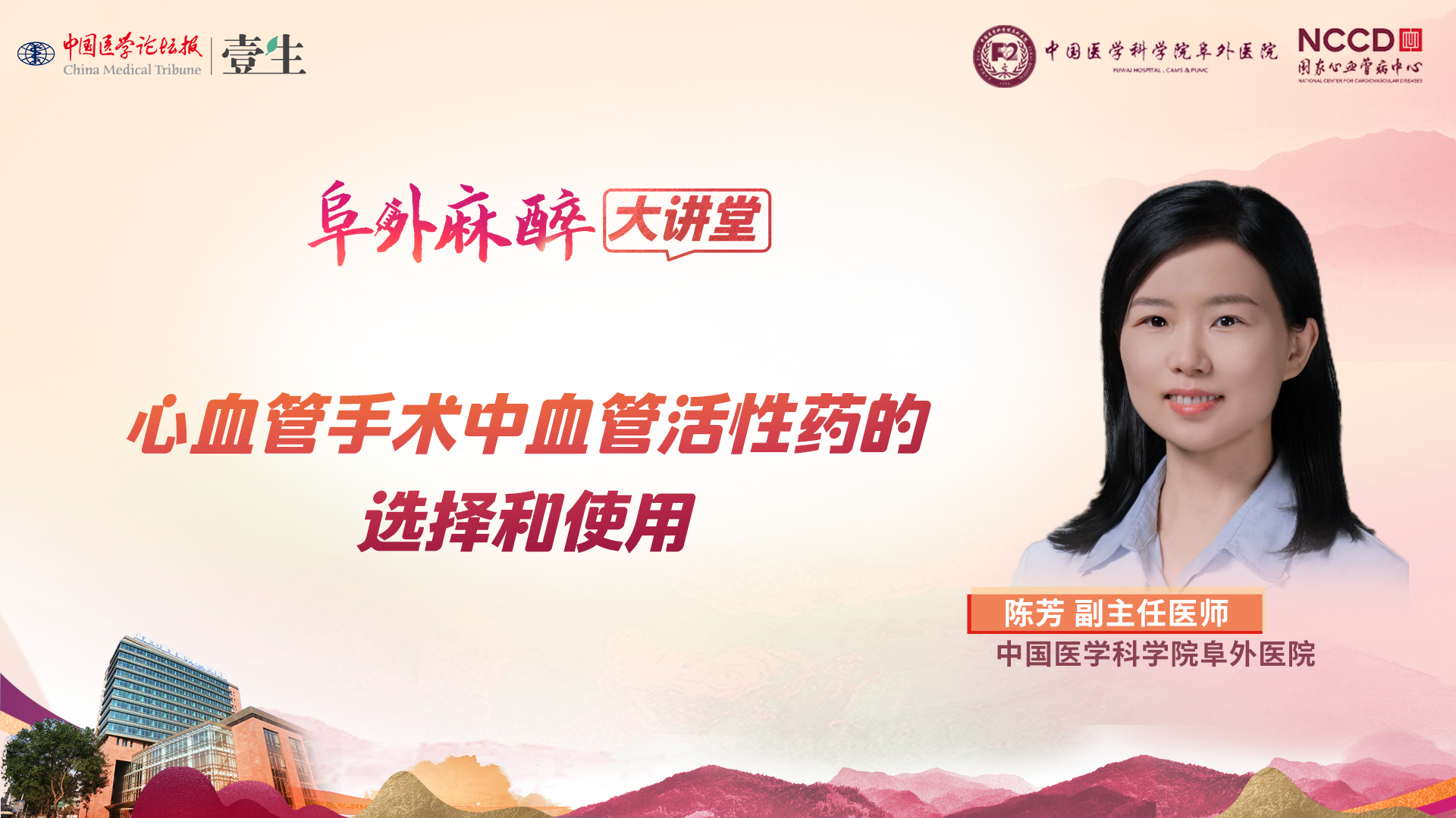 【本期讲题】心血管手术中血管活性药物的选择和使用【本期讲者】陈芳 副主任医师 中国医学科学院阜外医院麻醉中心