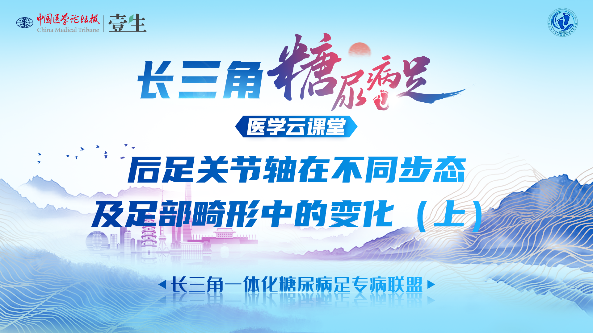 长三角糖尿病足医学云课堂本期讲题后足关节轴在不同步态及足部畸形中的变化(下)——距下关节轴与跗横关节轴对足部行走功能的影响主讲嘉宾李力毅 教授东部战区空军医院糖尿病足中心