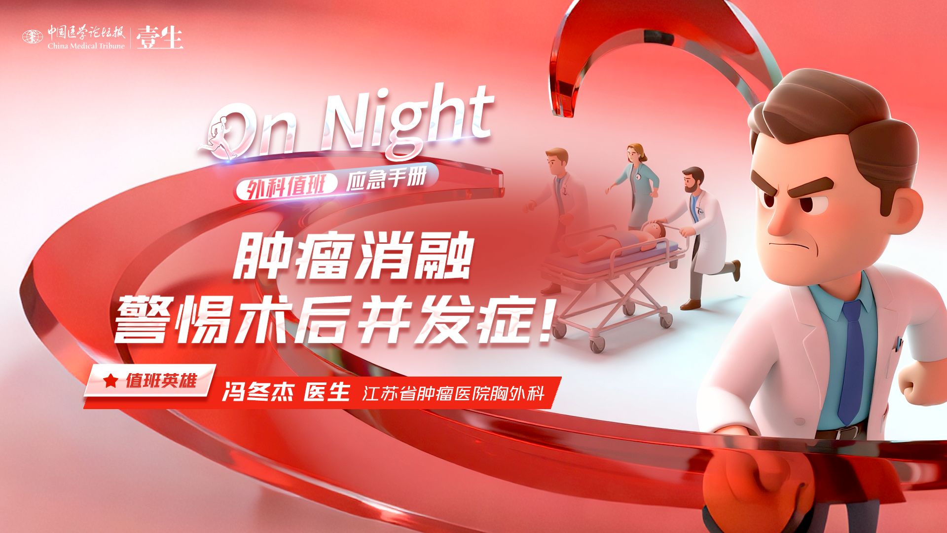 “On Night 外科值班应急手册”短视频活动9月开启!3分钟掌握1个值班关键知识点,轻松学习,即学即用!长期更新,敬请期待!【本期值班英雄】江苏省肿瘤医院胸外科 冯冬杰 医生
