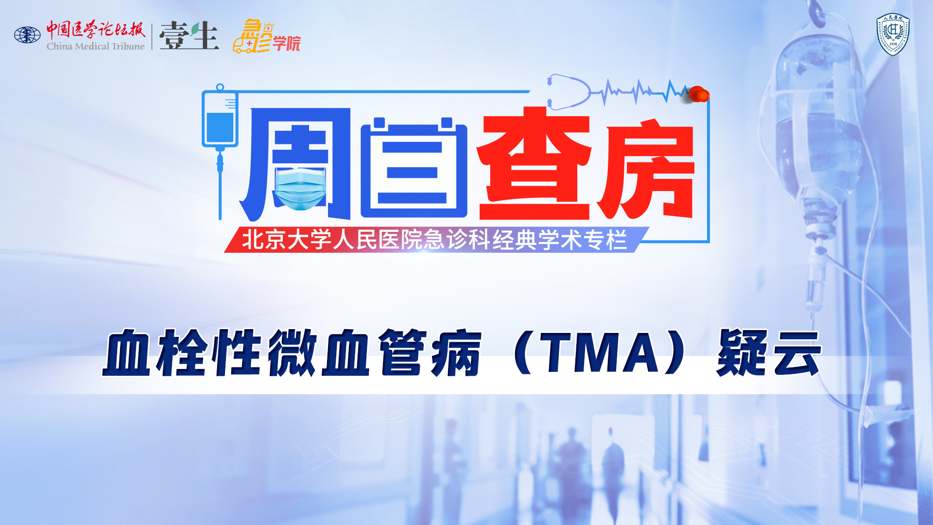 栏目介绍北京大学人民医院急诊科经典学术活动《周三查房》,自2020年11月起入驻中国医学论坛报·壹生急诊学院,经典病例结合急诊科核心知识点讲解,全部免费开放,供临床同道交流学习。更多内容,请安装壹生App,关注“急诊”频道。课程信息讲题:血栓性微血管病(TMA)疑云讲者:王晓骞 医生讨论专家:王煜冉,董桂英等上线时间:1月21日(周三)温馨提示:微信搜索“壹生急诊学院”,关注后免费获得上课提醒,精彩内容不错过。