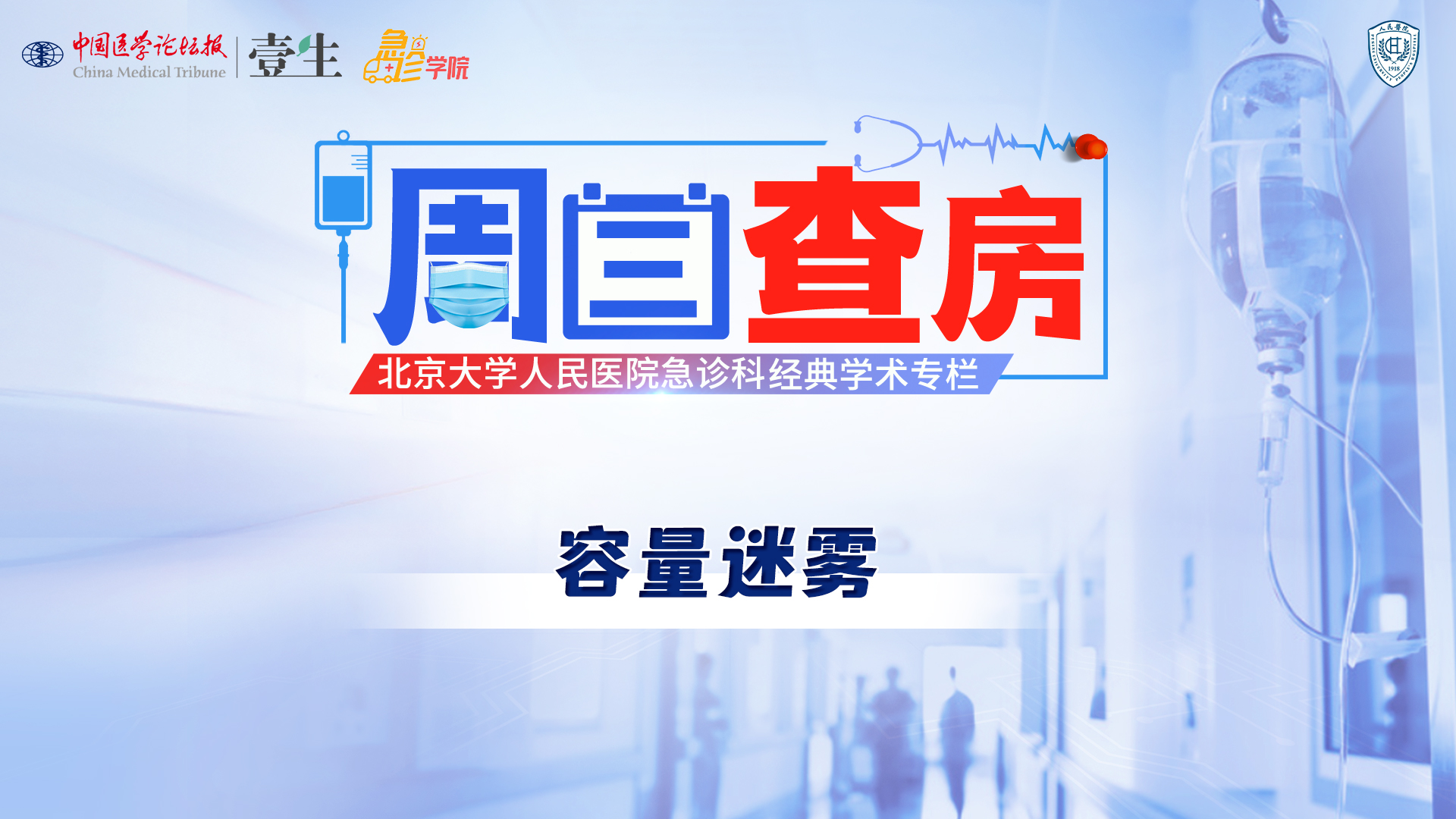 栏目介绍北京大学人民医院急诊科经典学术活动《周三查房》,自2020年11月起入驻中国医学论坛报·壹生急诊学院,经典病例结合急诊科核心知识点讲解,全部免费开放,供临床同道交流学习。更多内容,请安装壹生App,关注“急诊”频道。课程信息讲题:容量迷雾讲者:高梦鸽 医生讨论专家:窦丽稳,郭维,郭杨等上线时间:4月8日(周三)温馨提示:微信搜索“壹生急诊学院”,关注后免费获得上课提醒,精彩内容不错过。